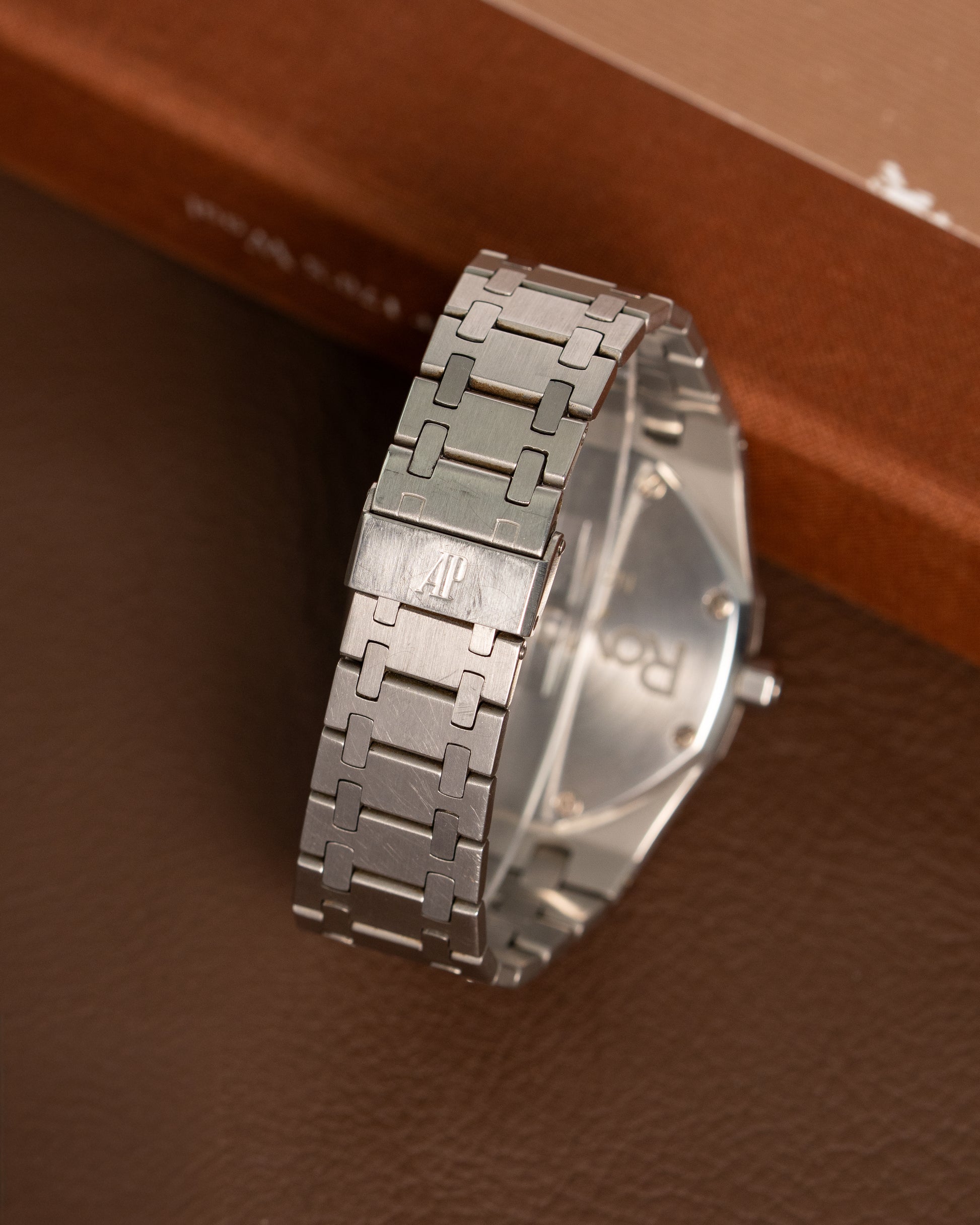This Royal Oak is the legendary reference 5402ST, launched in 1972 this is the first reference of this iconic model. The watch has a stainless steel case adorned with the recognisable octagonal bezel, firmly secured by screws. The beautiful integrated flat link bracelet adds to the sleek design of the watch. With a case size of 39mm, this one is considered Jumbo size compared to other watches from that time.