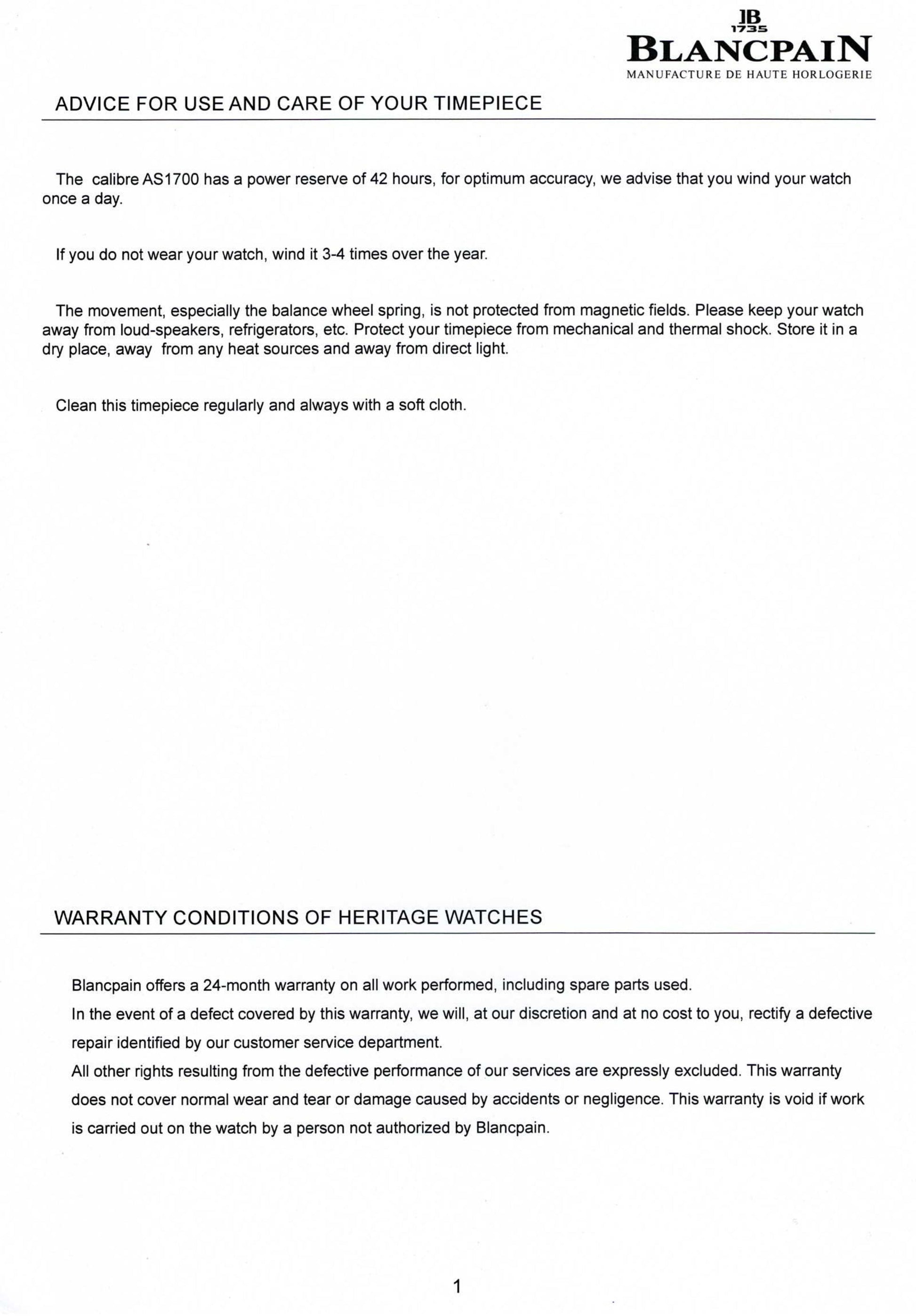 This piece comes with a full documentation of the Blancpain heritage program.