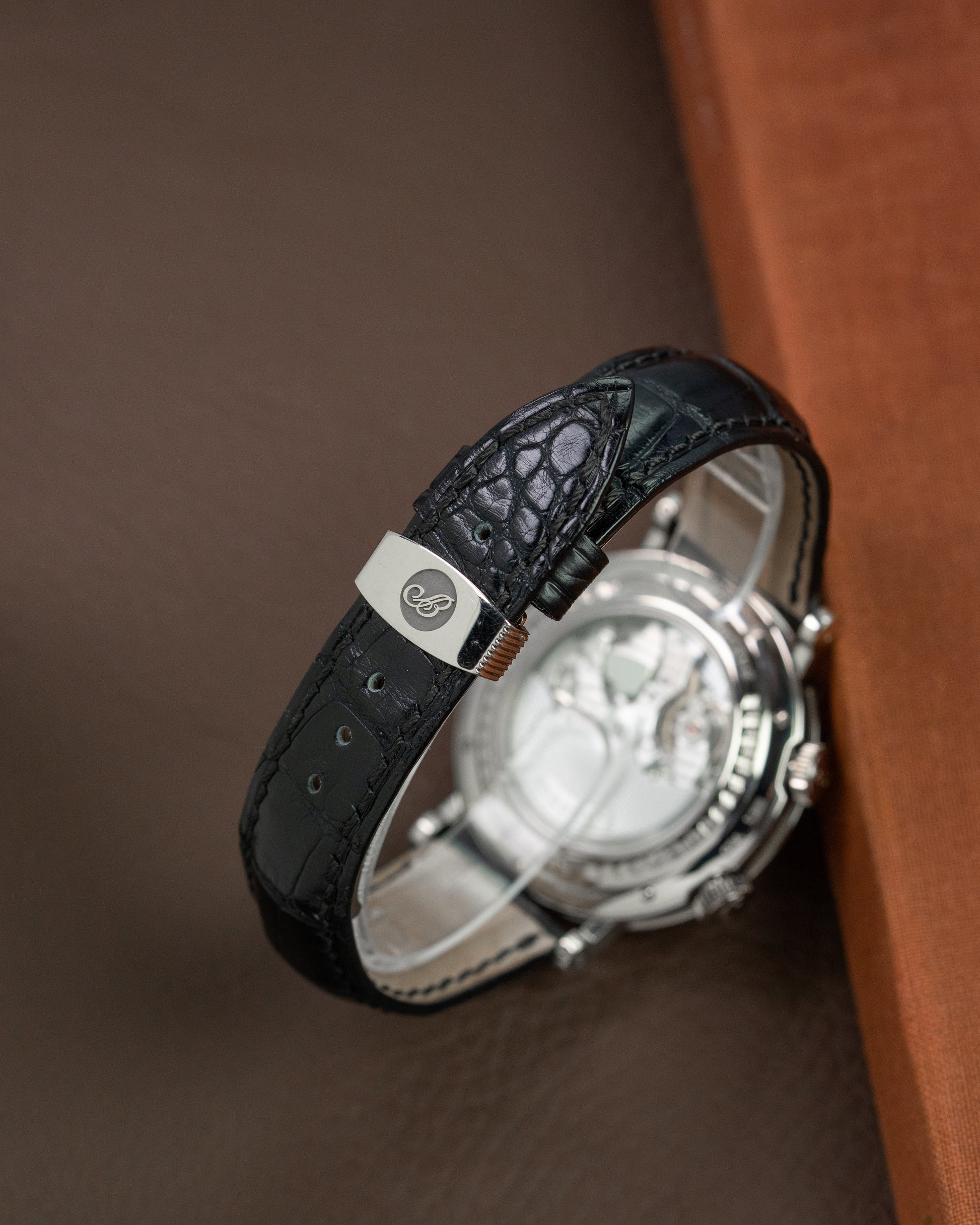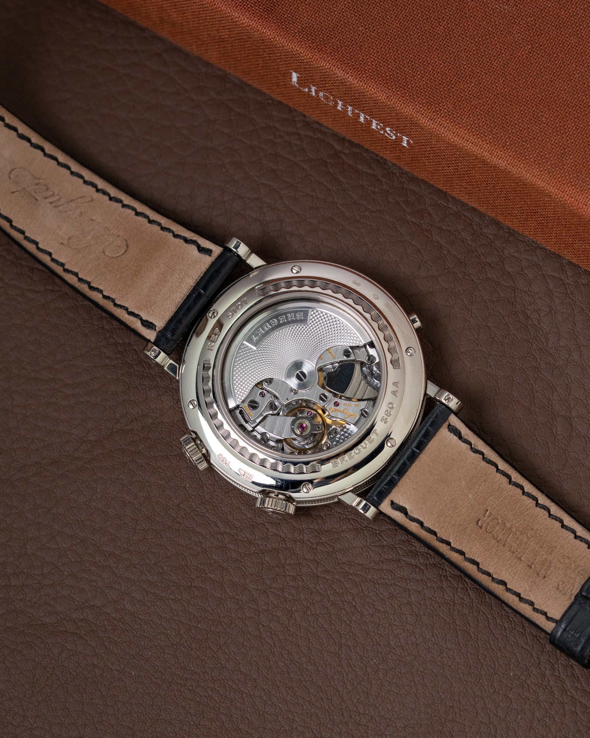 This specific Breguet Classique Réveil Du Tsar we are offering to you definitely takes the take. Breguet is known for making refined timepieces, and this one is a perfect example because of the craftsmanship that is put into this watch. Starting with case crafted from 18K white gold, the side of the case has a stunning coin-edge finish. The case housed an artwork too. The dial has a guilloché finish, a variety of different patterns which are engraved by hand. Hours of work have been put into creating just one dial, making one mistake means the watchmaker should start all over again. This piece is powered by the automatic caliber 519 movement, this complicated mechanical beating heart displays the time, date, GMT, power reserve and this piece has an alarm function to wake op the Tsar. Through the transparent case back you can see the breathtaking finish on the movement. Guilloché finish on the rotor, Côtes de Gèneve on the bridges and perlage on the main plate, this piece ticks all the boxes in our opinion.