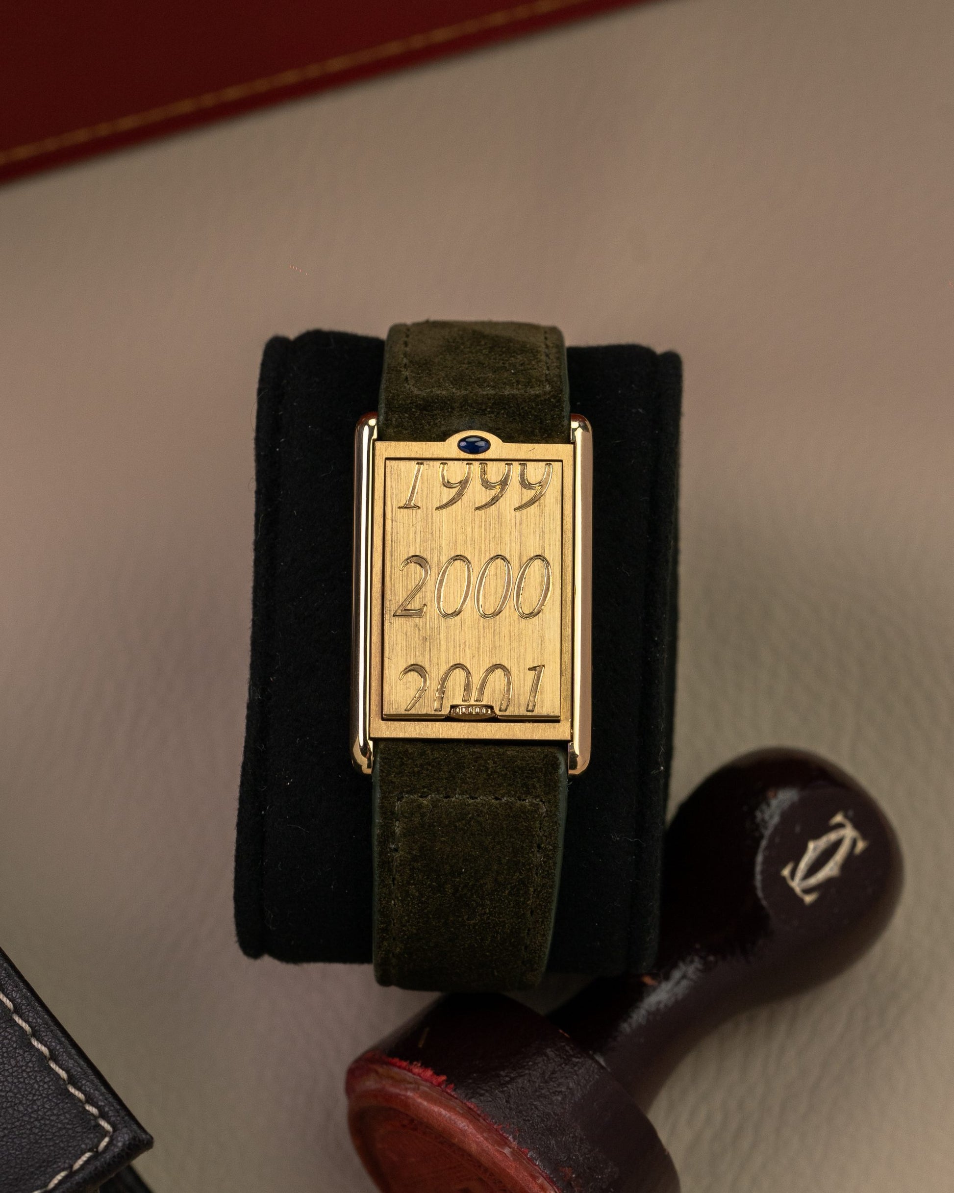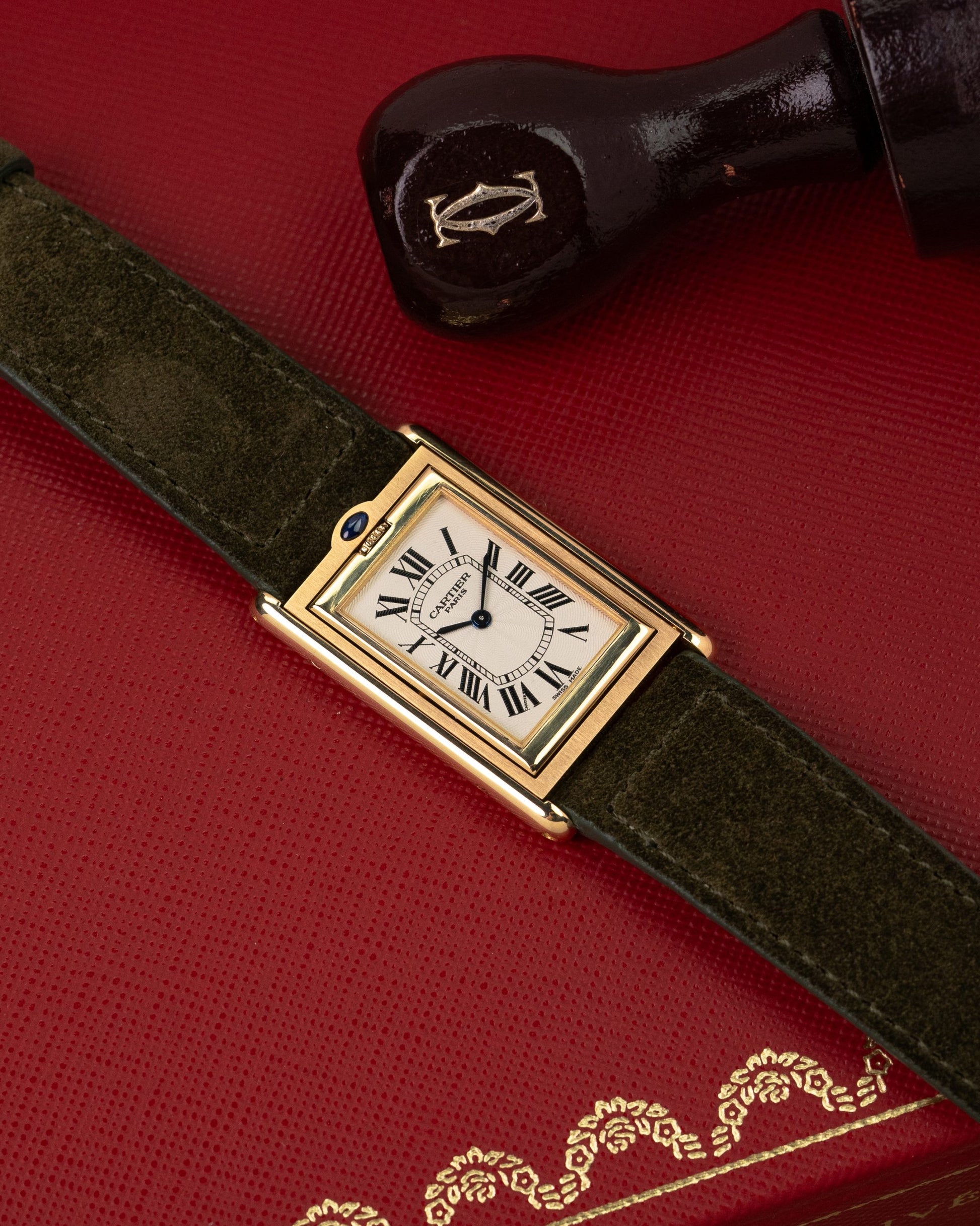 This particular piece is from Cartier's 'CPCP' collection which is truly rooted in Cartier's craftsmanship and design aesthetics. They re-introduced many models in this collection under which this beautiful Basculante. The finishing of this particular example is one of our favorites from the CPCP collection. The Guilloche dial, the production date finish together with the 'C' signature finish on the caseback speaks for themselves.