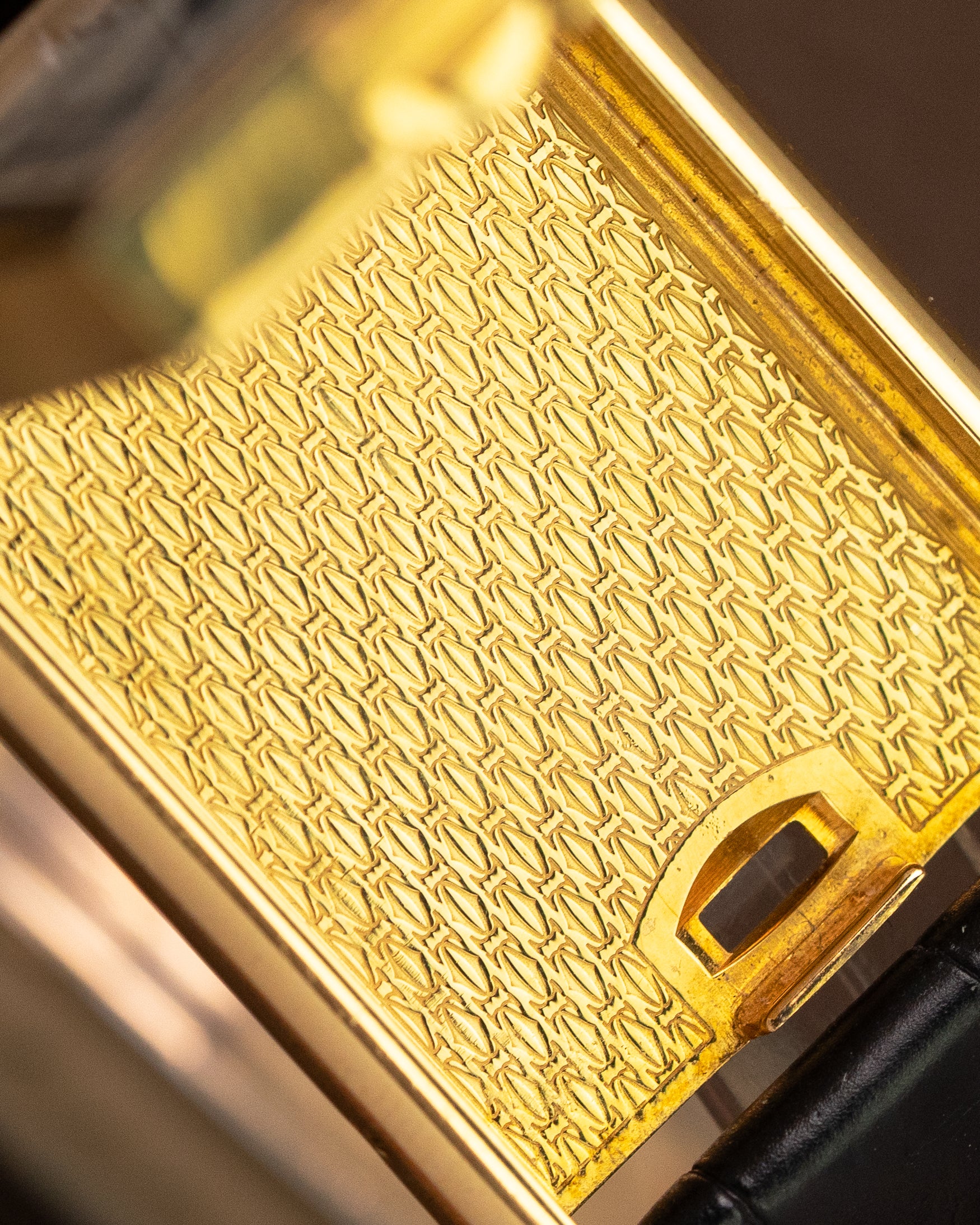 Cartier brought the Basculante back during the CPCP era as a celebration of mechanical watchmaking, a bold statement in the aftermath of the Quartz Crisis. True to the CPCP signature style, this version features a guilloché dial, blued steel hands, and Roman numerals, all housed in a finely crafted rectangular case.