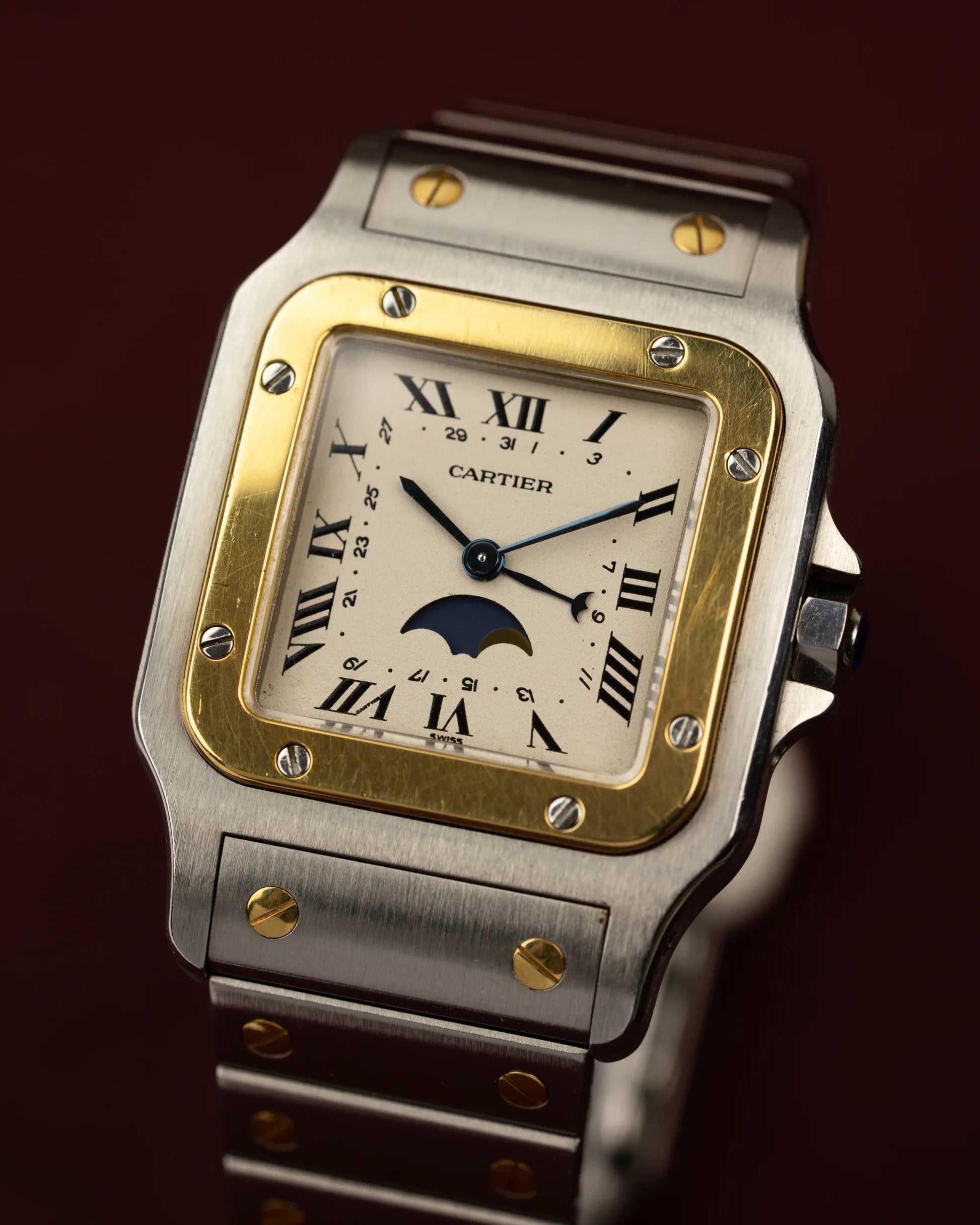 Presenting an absolute legendary model from Cartier: the Santos Galbée Moonphase 119901. It's a rare find indeed to encounter vintage watches in such pristine state.