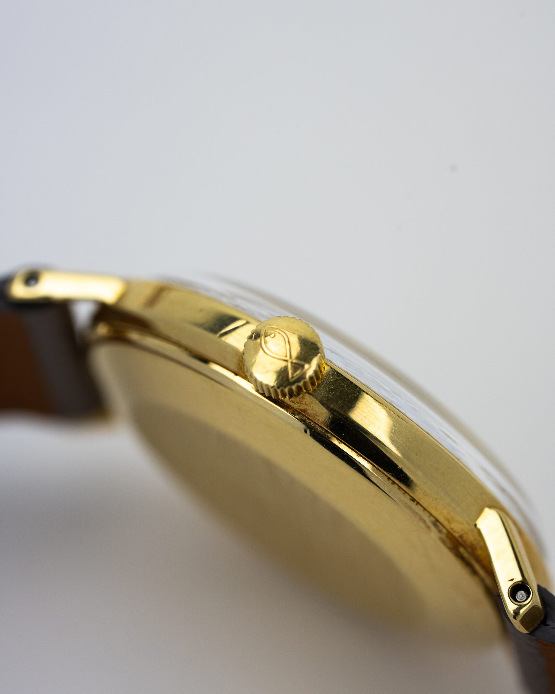 You already know we always love to offer a well-preserved IWC, but this particular one is special in our opinion. The 8541 is crafted from 18kt yellow gold and features an amazing radiant champagne/silver sunburst dial together with applied gold baton makers. The iconic Calatrava-shaped case is another feature we love and it's a perfect example of some timeless design features the vintage watches have to offer. With its 34mm size, the IWC watch is perfect for someone who love to keeps it low-key while wearing a timeless piece that will definitely compliment his style.