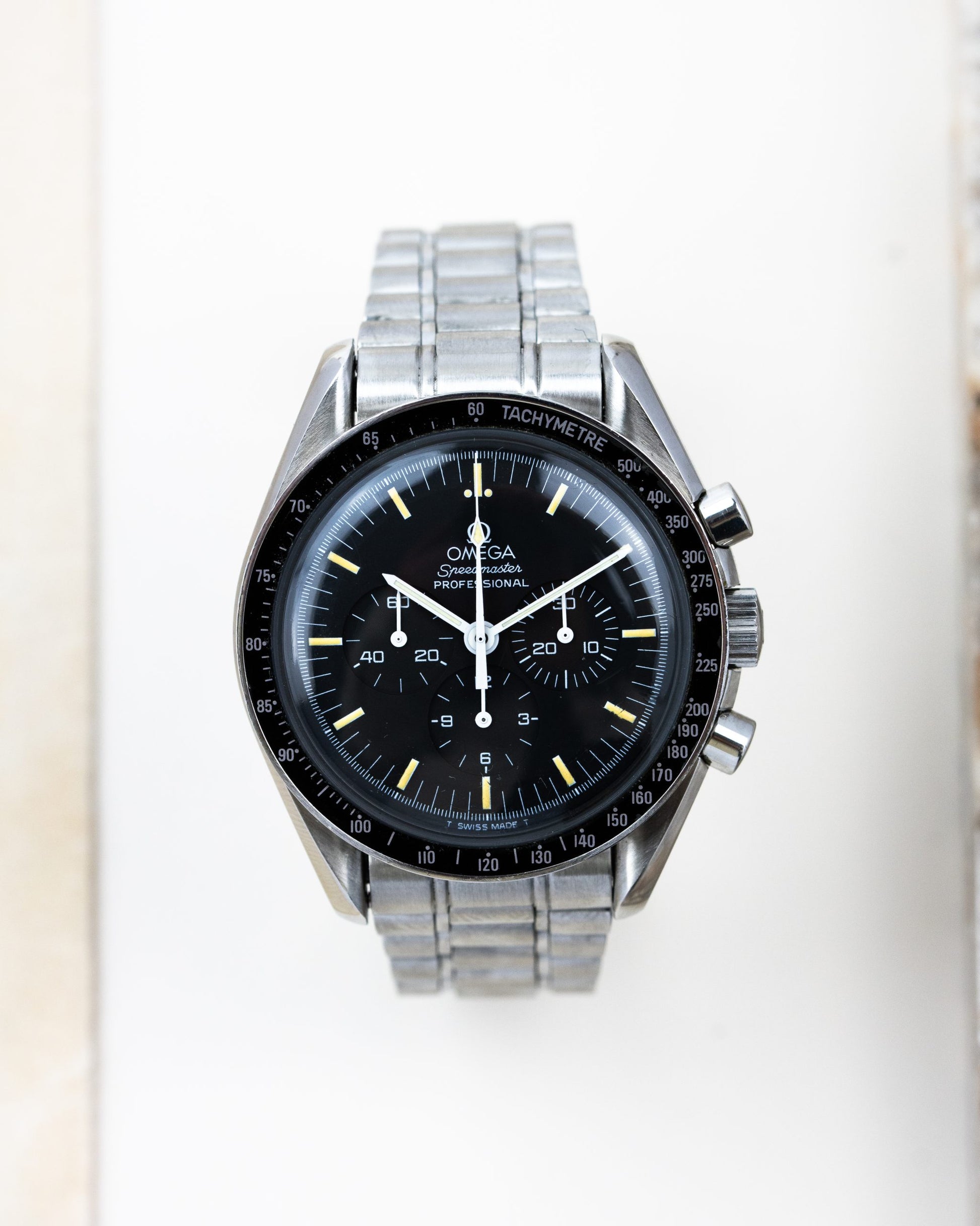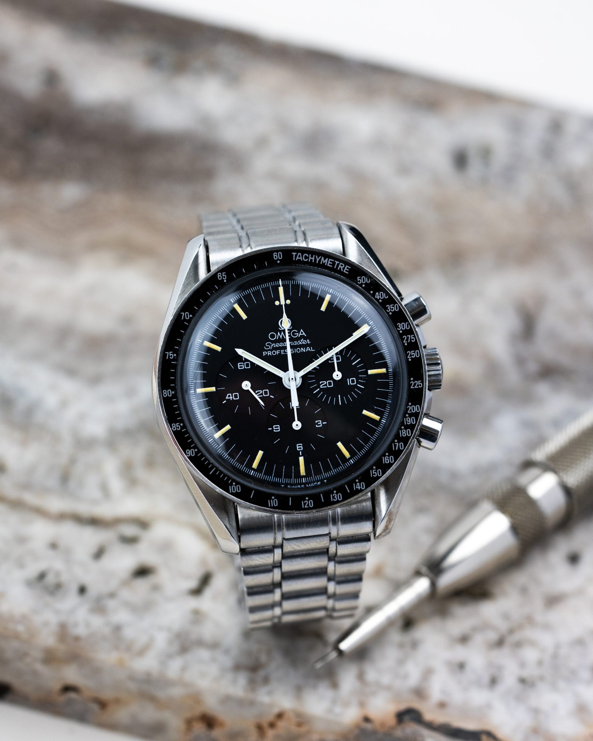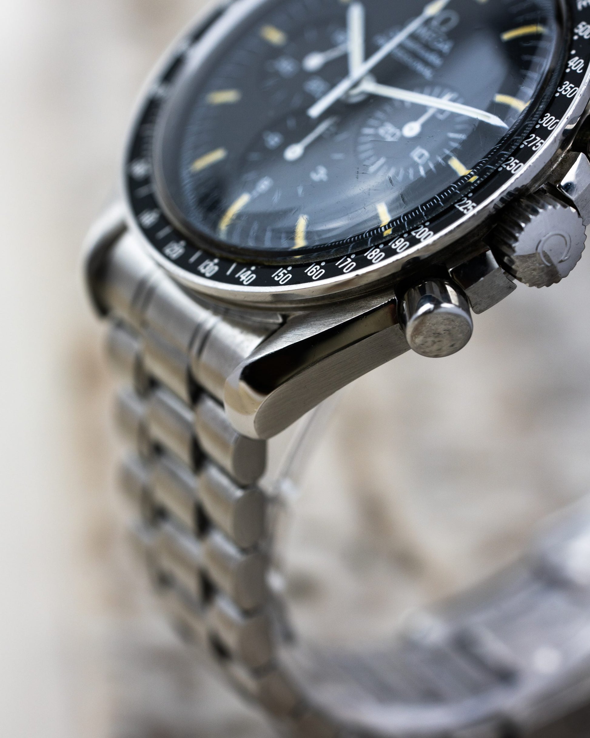 But when this Speedmaster came in, it happened. Not because of an extravagant dial color or because it’s a rare reference. Not because its a precious metal watch or an one of a kind. This one is special because of its beautiful patina and condition. The case is very sharp and the bracelet looks amazing and feels very solid but the best part about this piece has to be its dial. It has got an absolutely stunning patina which contrast to an immaculate dial, looks almost like it left the factory this way.