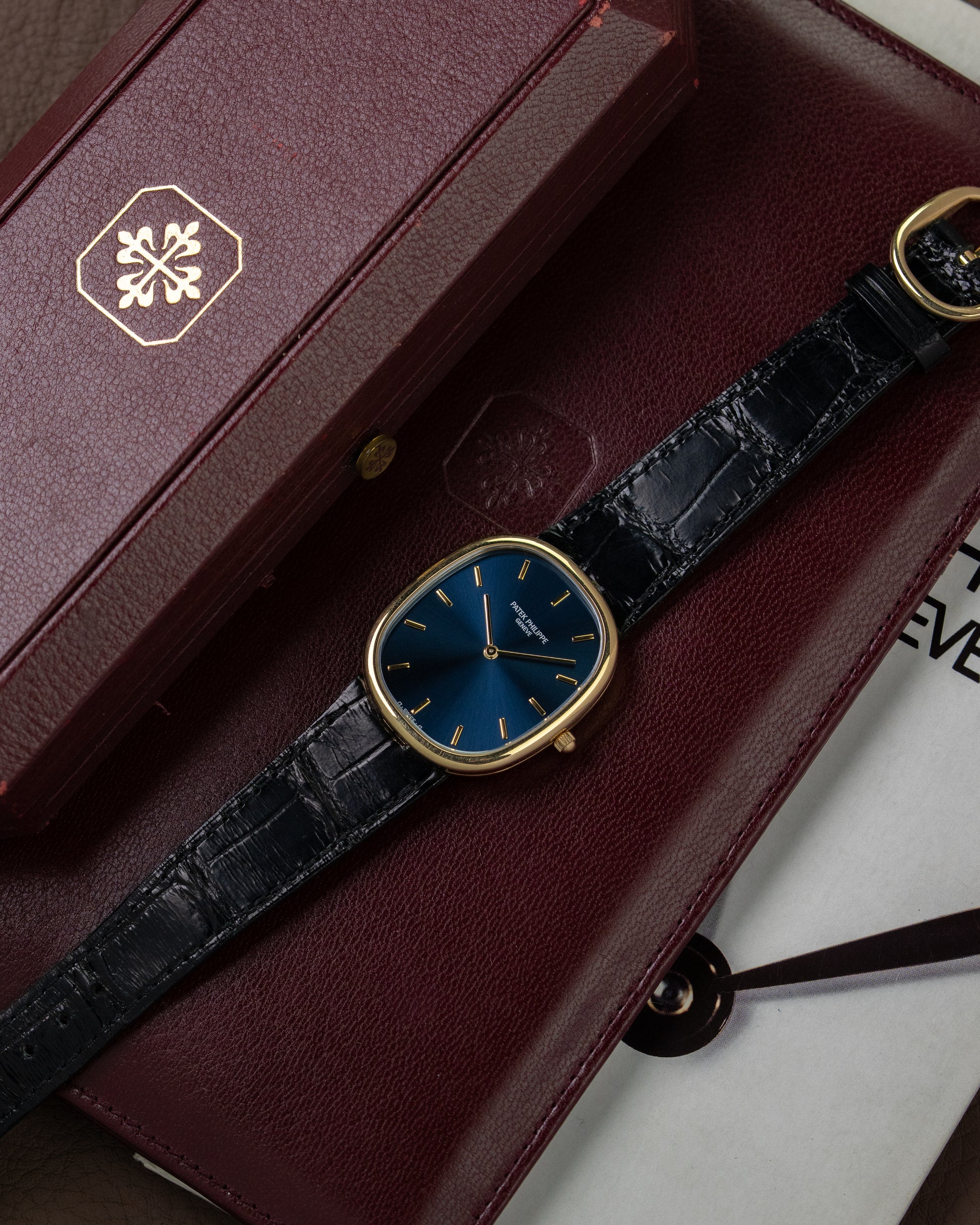 The Patek Philippe 3738 is another great timepiece we've added to our collection. This iconic model is easily recognizable by the shape of the case, a design first introduced by Patek Philippe in 1968 with the iconic Ellipse.