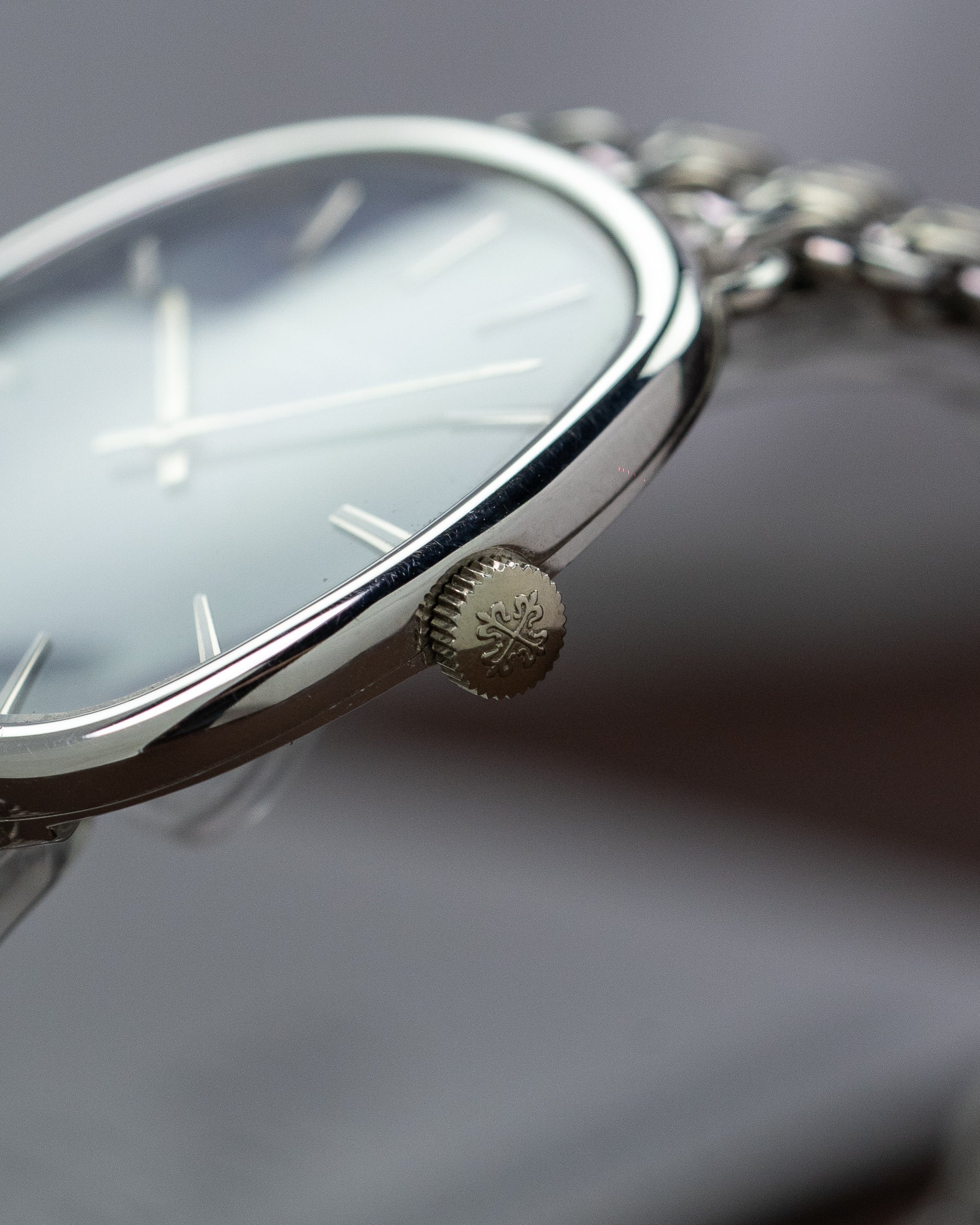 Another great example of Patek Philippe's exceptional craftsmanship. The integrated bracelet, featuring the iconic Calatrava logo on the clasp, is both unique and timeless. We are proud to offer such watches, as finding pieces like this in the current market is rare.
