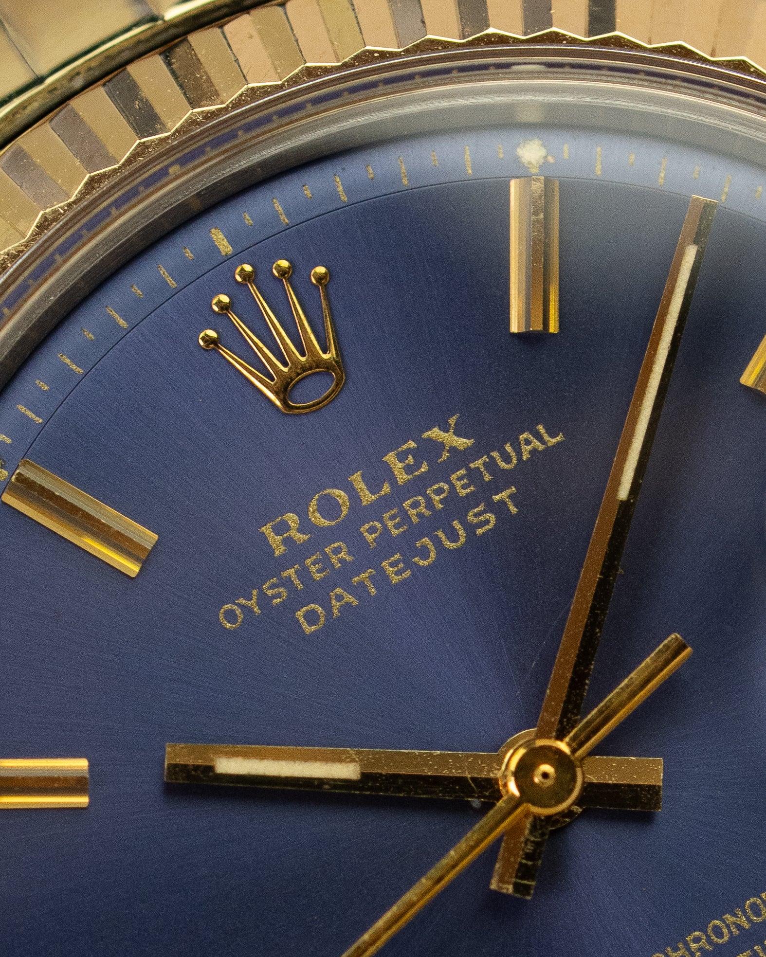 This Datejust is complimented with a bicolor finish, but the star of the show is obviously its dial. The blue dials are way more uncommon to see than the more regular gold or silver champagne dials. The blue dials are highly appreciated by collectors, because they know what’s what.