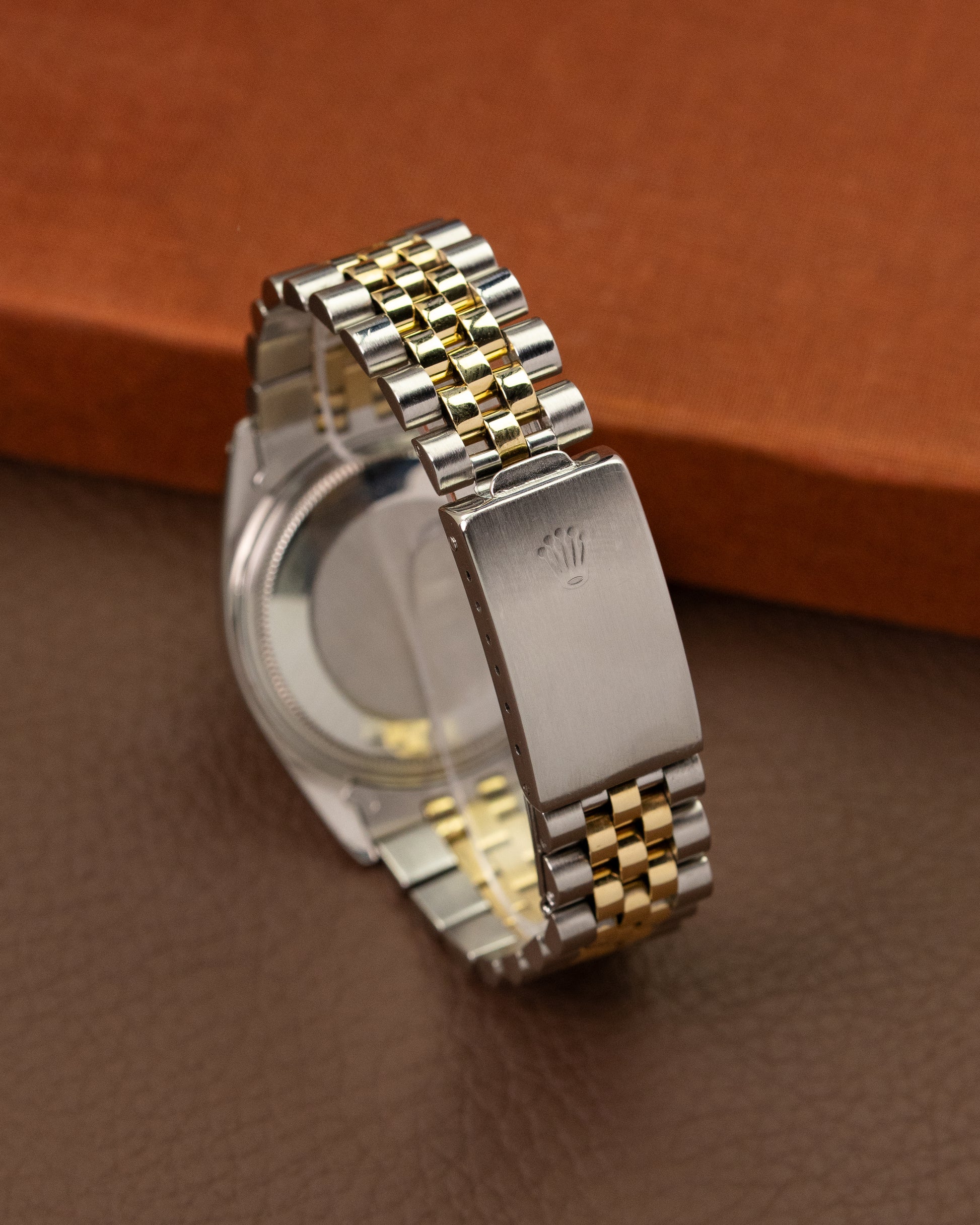 This is a Rolex Datejust 1601/3 which is crafted in stainless steel and 18k yellow gold. It’s always cool to see a bicolor watch from that period, but finding one in a good condition becomes harder every single day. Finding a watch like this example is the exact reason why we started selling vintage pieces. Finding watches you won’t see often is what makes us exciting.