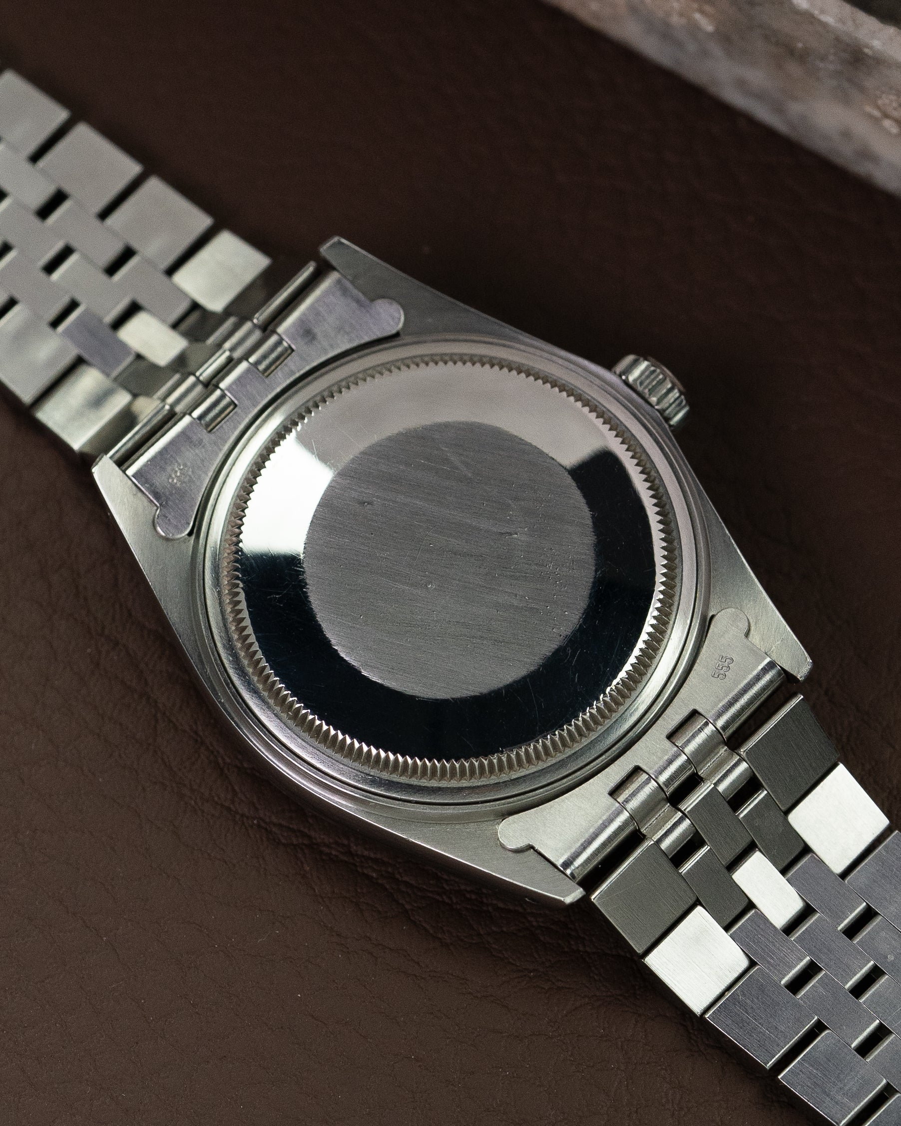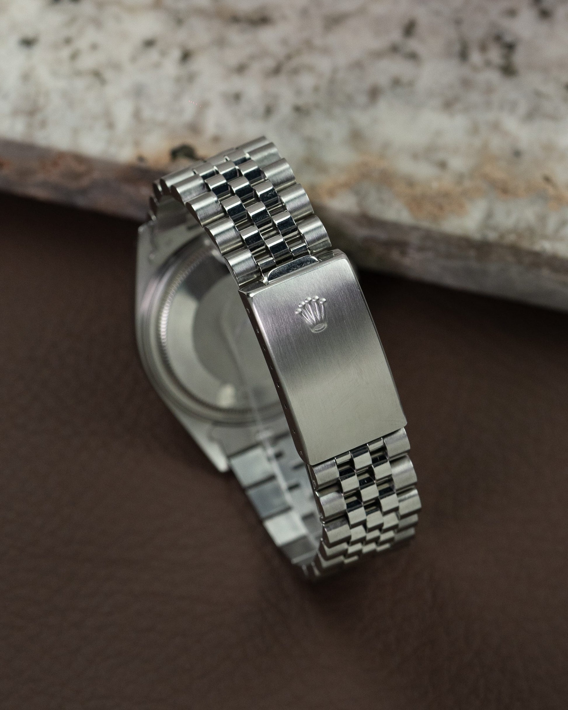 This particulier model is a 16014 Datejust in amazing condition. Featuring a quick-set movement with plexiglass crystal and a Silver Dial.