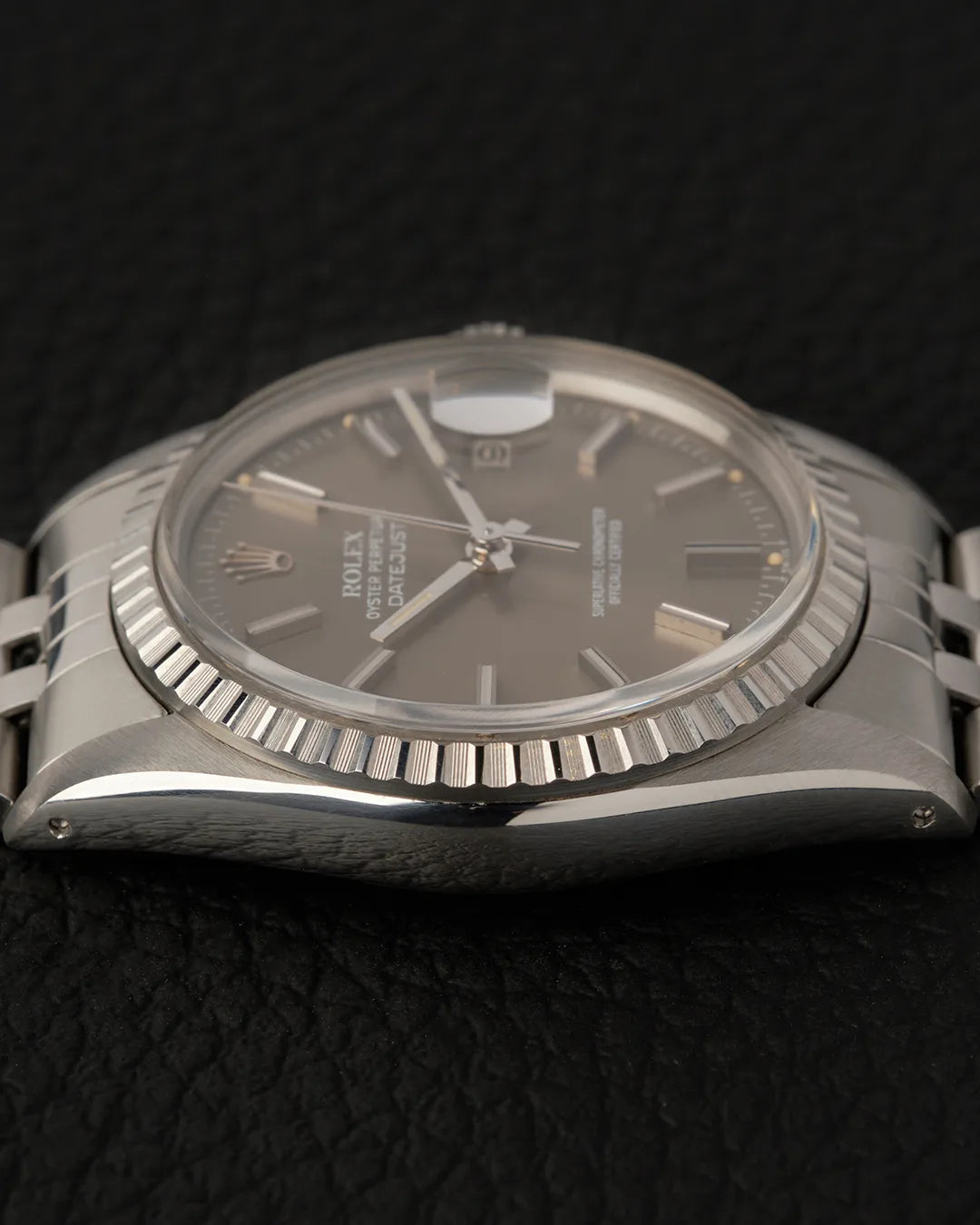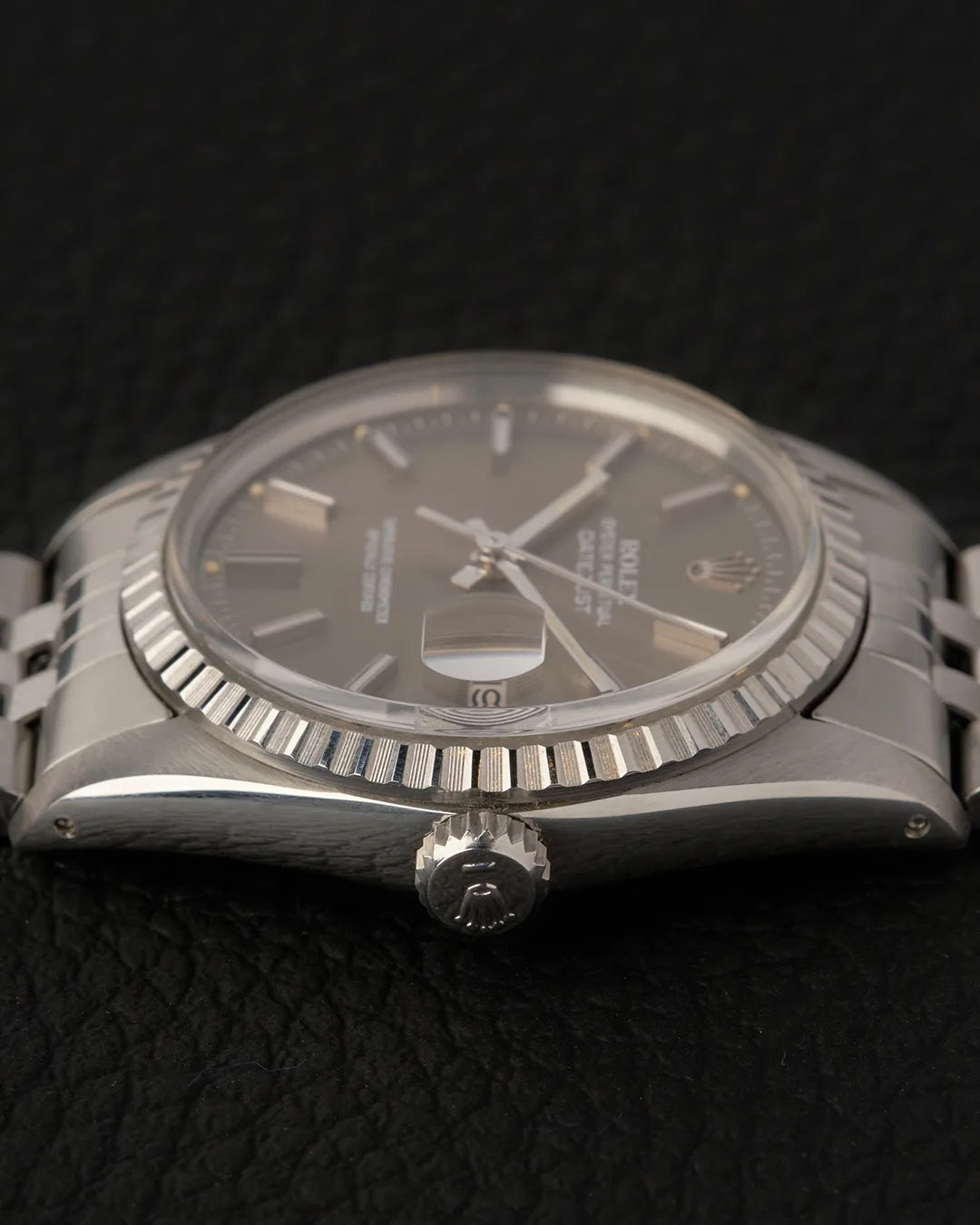 In this case, the 16030 stands out with its engine-turned steel bezel, complemented by a Jubilee bracelet in excellent condition with minimal signs of stretching. The most alluring aspect of this Datejust is its nearly taupe-colored dial.