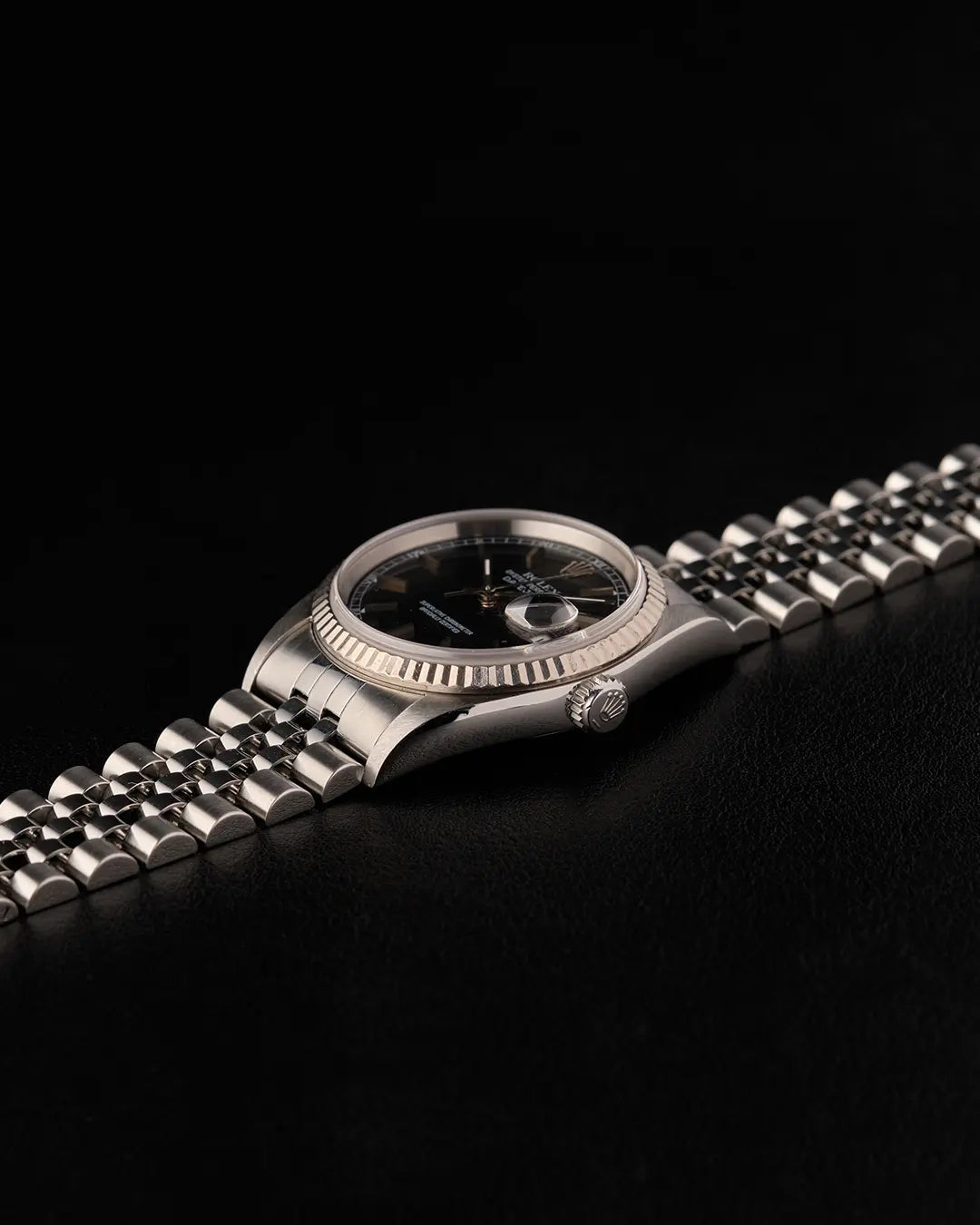 Datejusts come in all different sizes, colours, metals, dial configurations and movements. This 16234 with the black dial might be the best neo vintage model available. It provides you with the vintage look and feel that we love so much whilst it’s movement and bracelet are even more durable than its predecessors. A watch for everyday wear and one that will last you a life time if you take good care of it. Something this watch definitely deserves since it finds itself in a very good condition.
