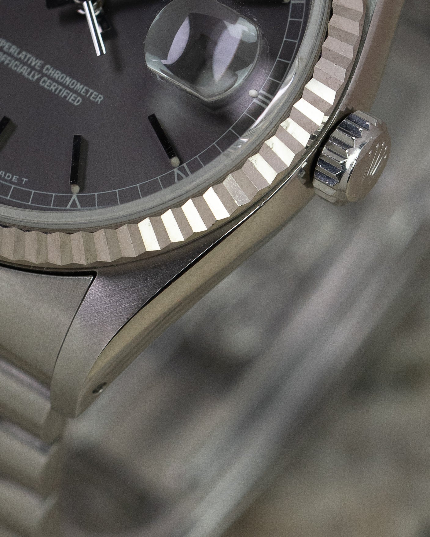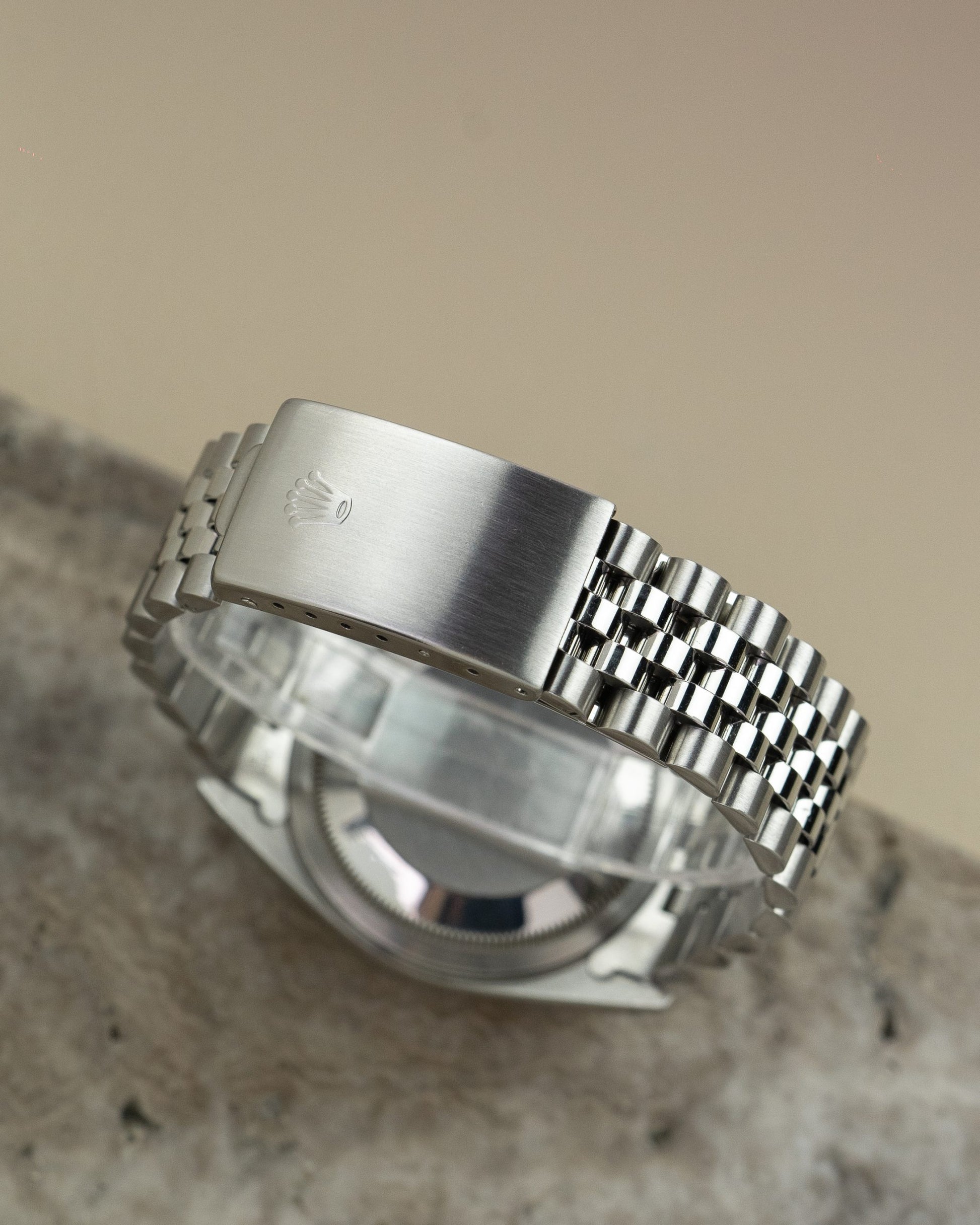 That’s exactly why we are always excited to offer pieces like this one. A grey dial 16234. Usually you’ll see the 16234’s with a black, blue or regular silver dial but finding a grey one is quite hard.