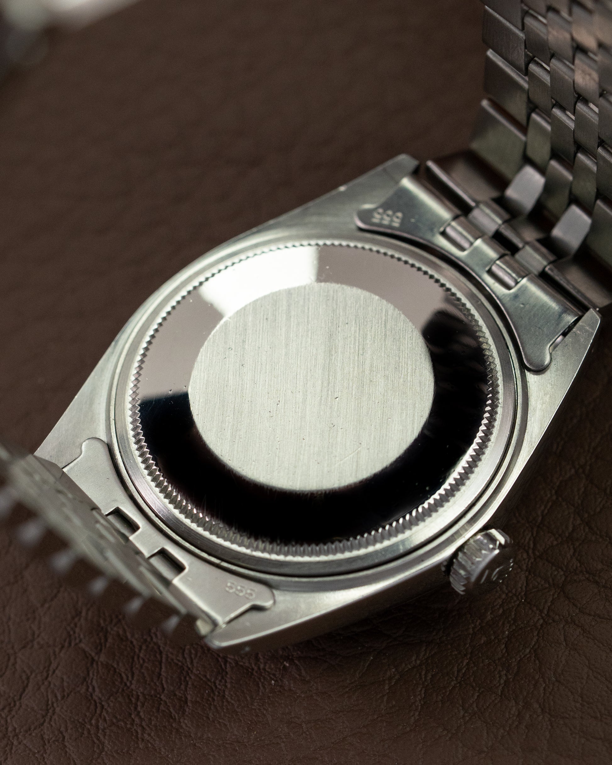 The 1603 is the perfect example of an entry level vintage watch. The pie-pan dial seen through the plexi crystal gives it a beautiful vintage look. The Rolex Datejust is most often seen with a fluted bezel, however this piece is fitted with an engine turned bezel. The engine turned bezel is discontinued and can only be seen on vintage models.