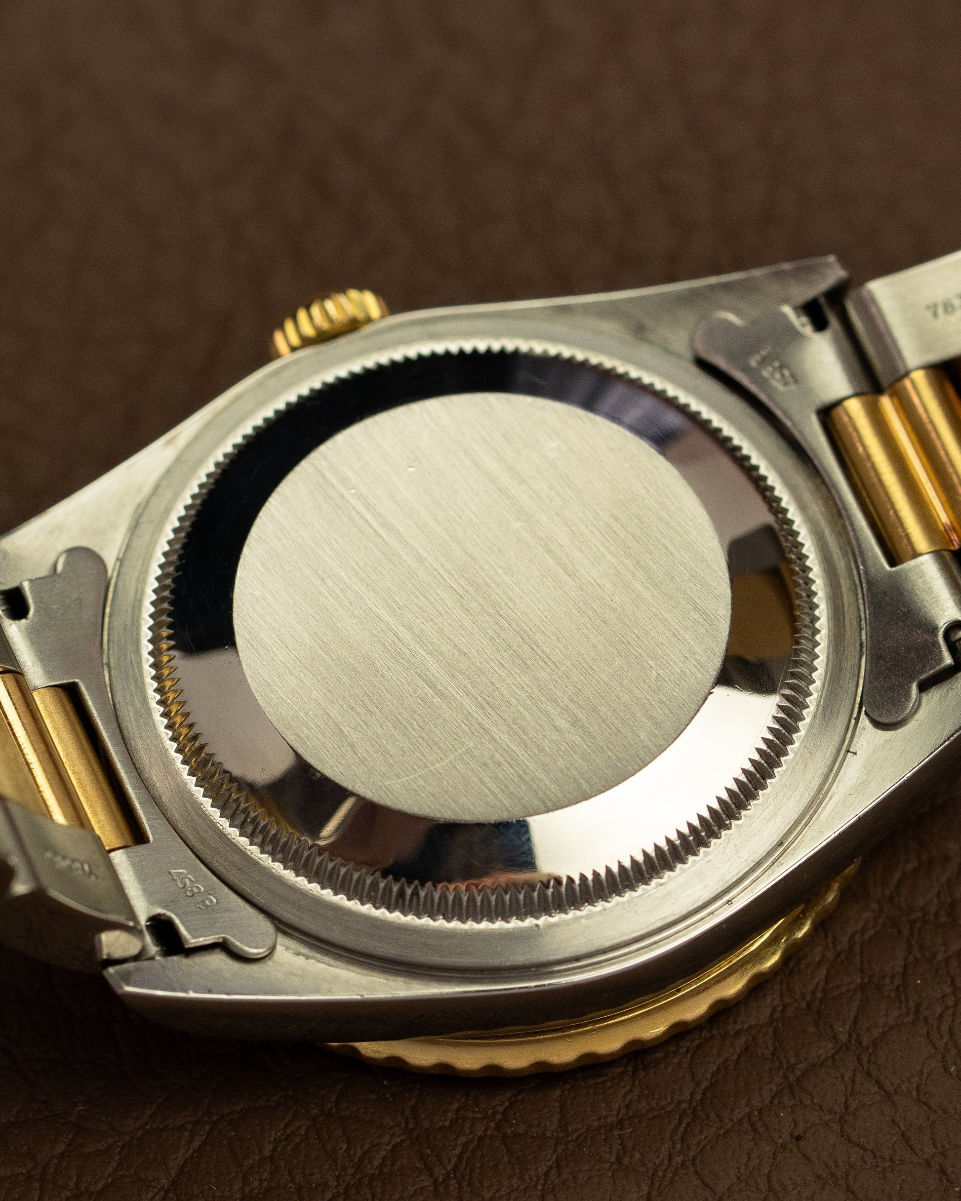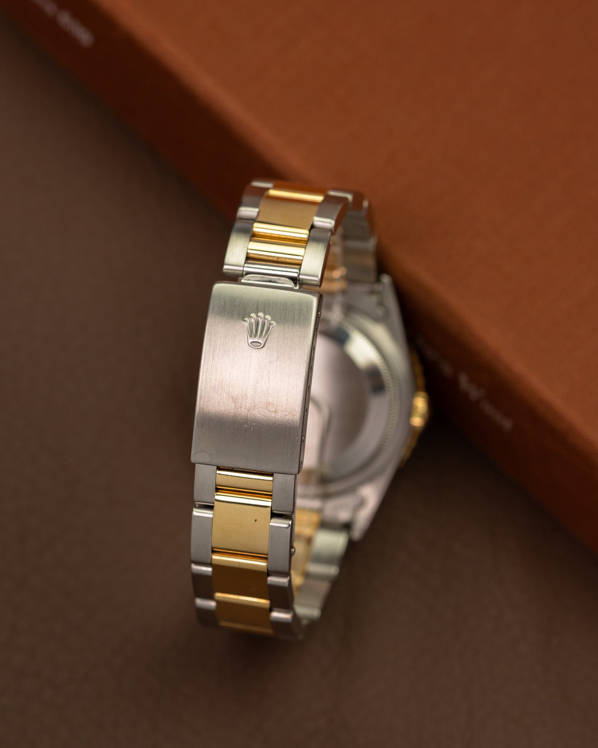 This example from 2001 is crafted in two materials, stainless steel and 18ct yellow gold. The 18ct bezel is obviously the star of the show which is simply stunning and a perfect combination with the two tone Oyster bracelet. The spotless white dial is seen through a sapphire crystal.
