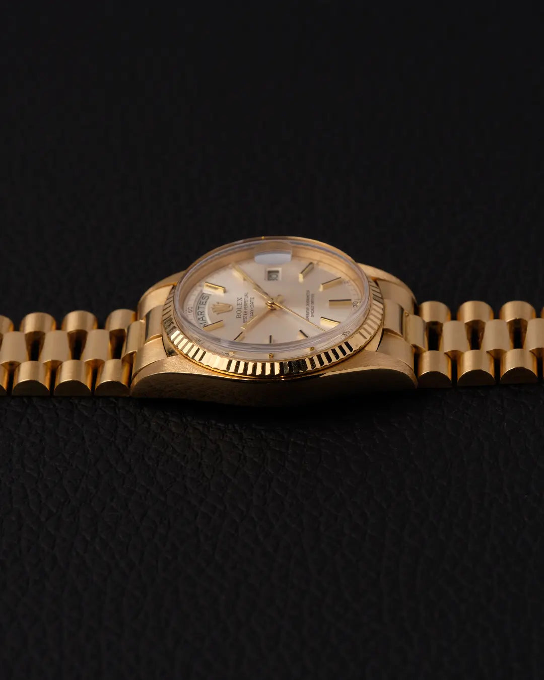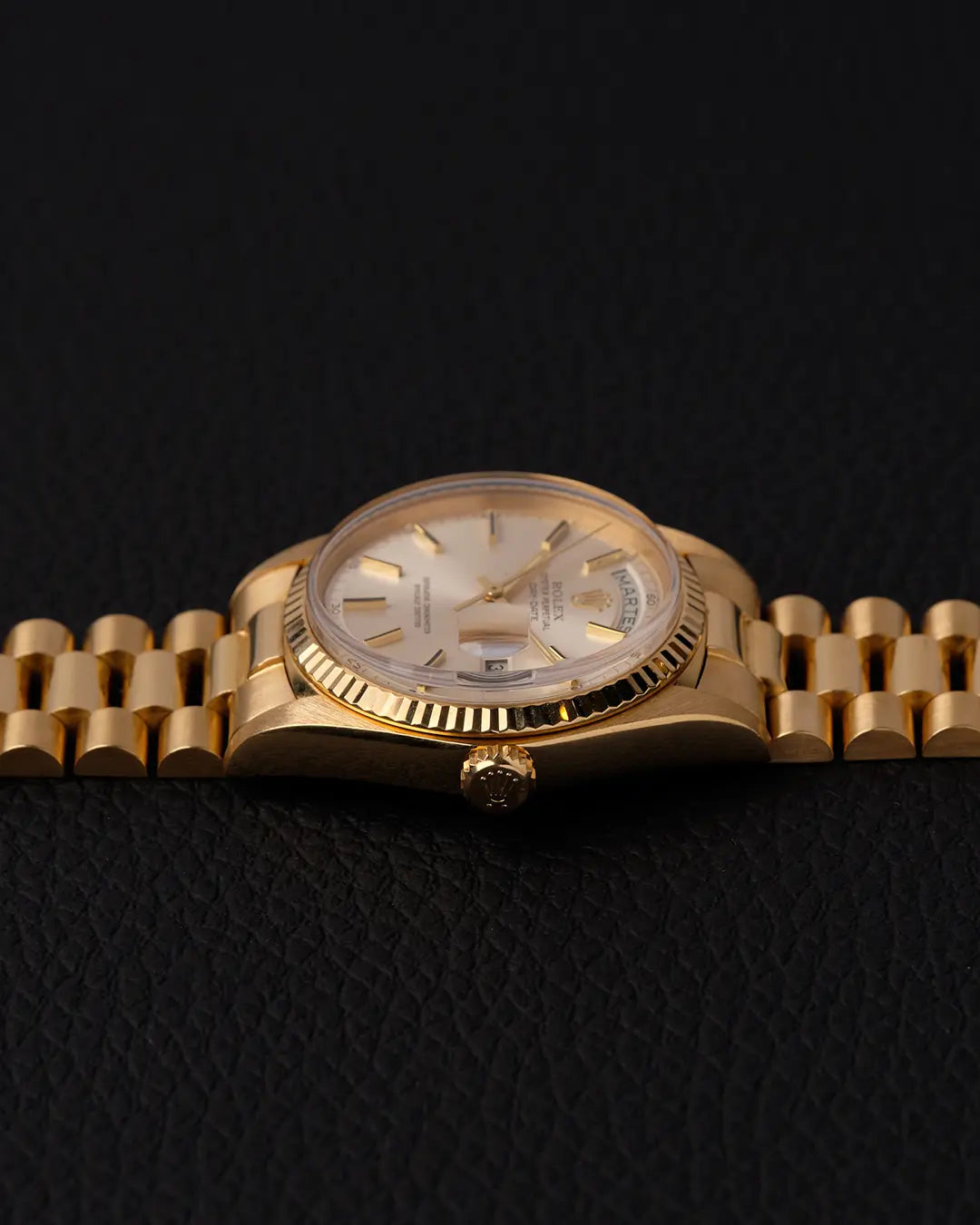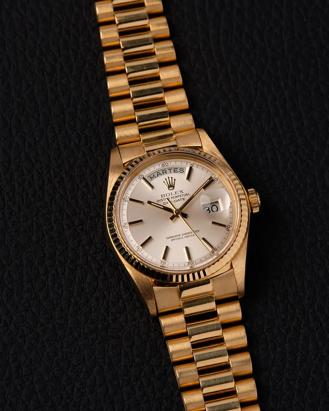The true presidents watch if we look back in history. It was not only worn by presidents of big companies but by true presidents as well. In fact, many people thought the day date was called the presidents watch because Lyndon B Johnson had famously worn one during his presidency. However, Rolex only called its bracelet the president just like the jubilee and the oyster had their own names. Nowadays, after Rolex advertised their Day Dates as president watches themselves in the mid-sixties, many people still refer to the Day Date as such. The configuration we have available for you is one LBJ could have worn himself (if he was Spanish speaking though, minor detail). It’s an 1803 with the same silver dial that he wore but a decade younger and in stunning condition. So, if you are ready to make some big decisions and lead your way in to the future, this is the perfect watch for you.
