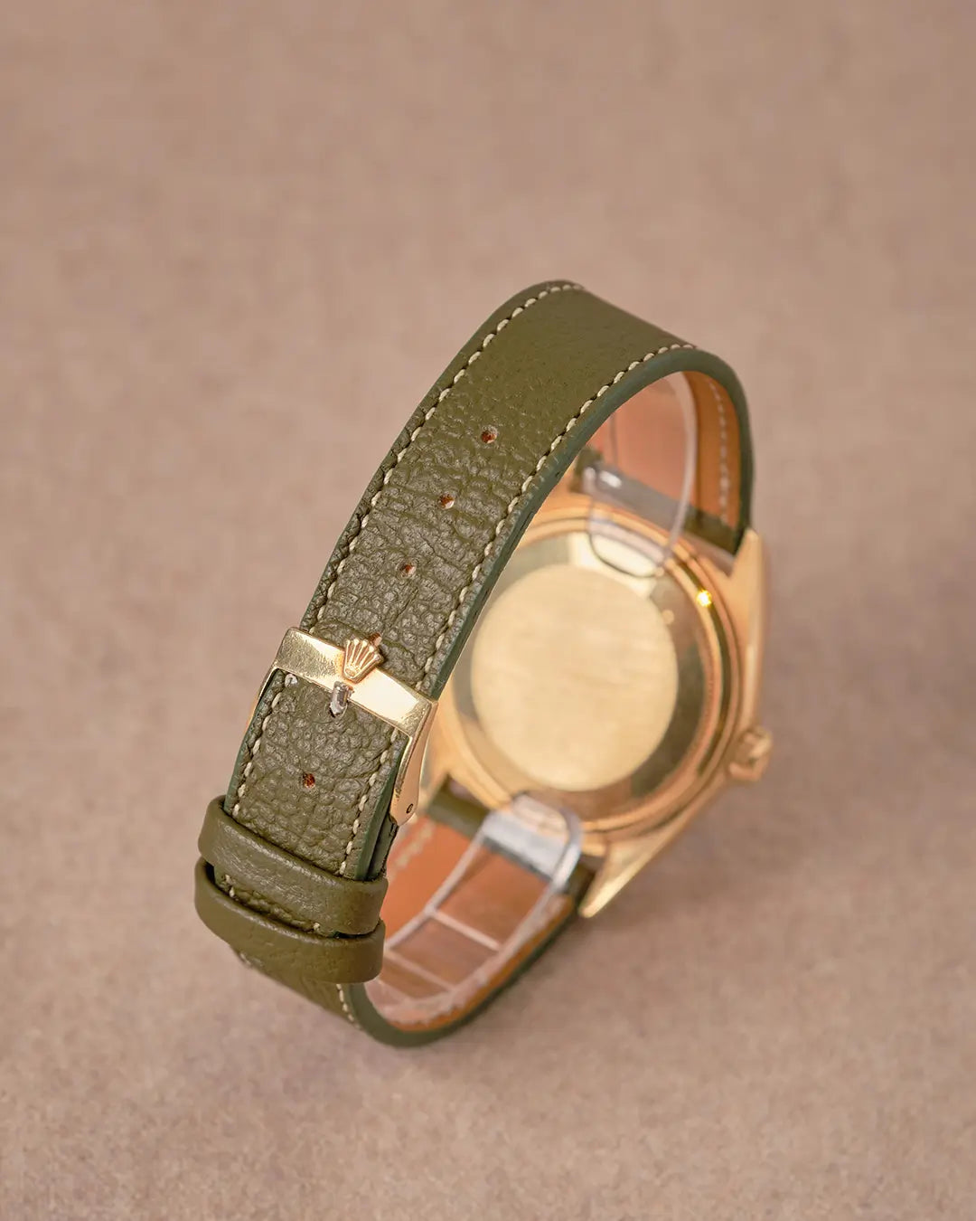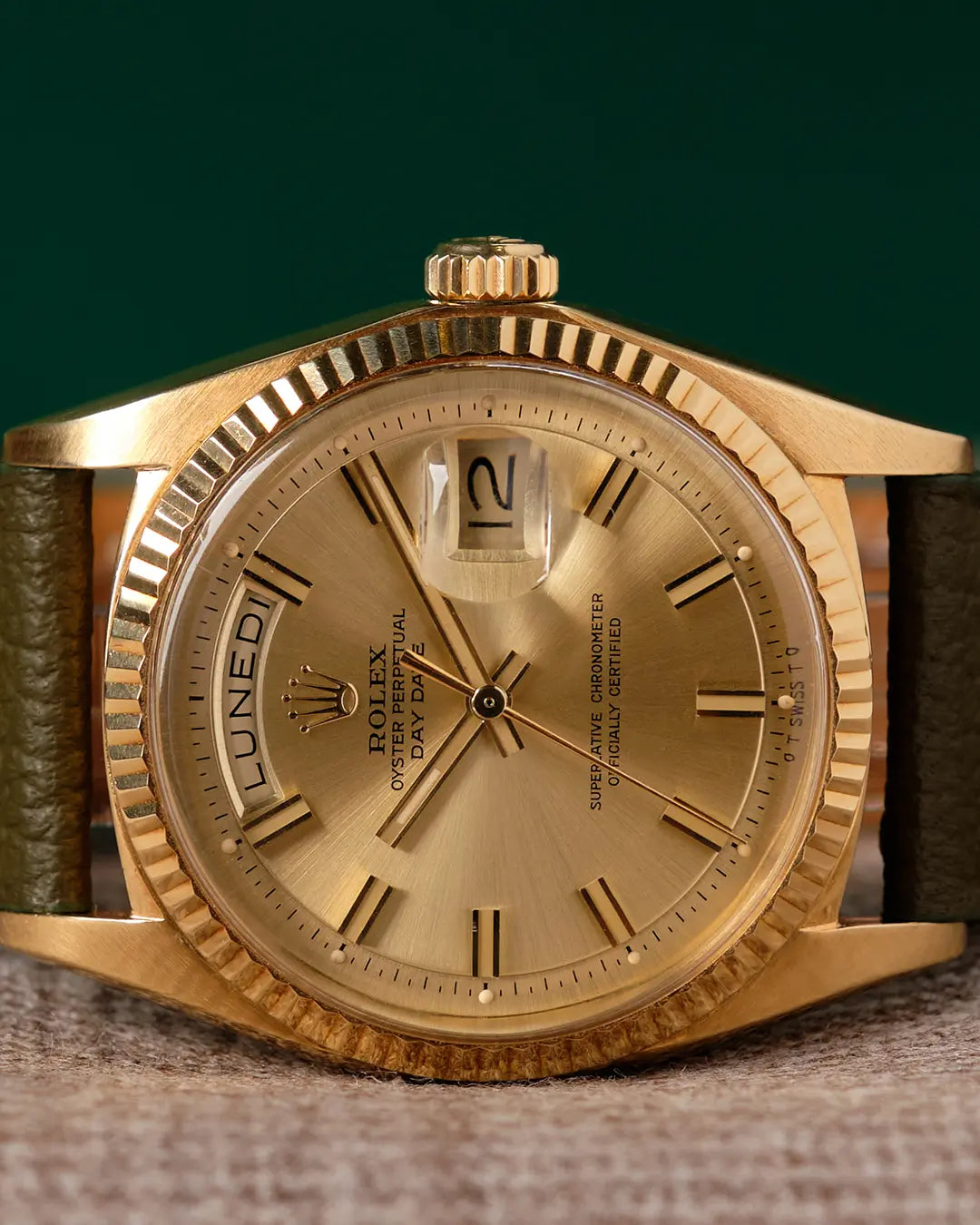 The Rolex Day-Date reference 1803 was introduced in 1956 and continued production until the late 1970s. In the heart of the watch you’ll find a Non-Quickset movement Caliber 1556.