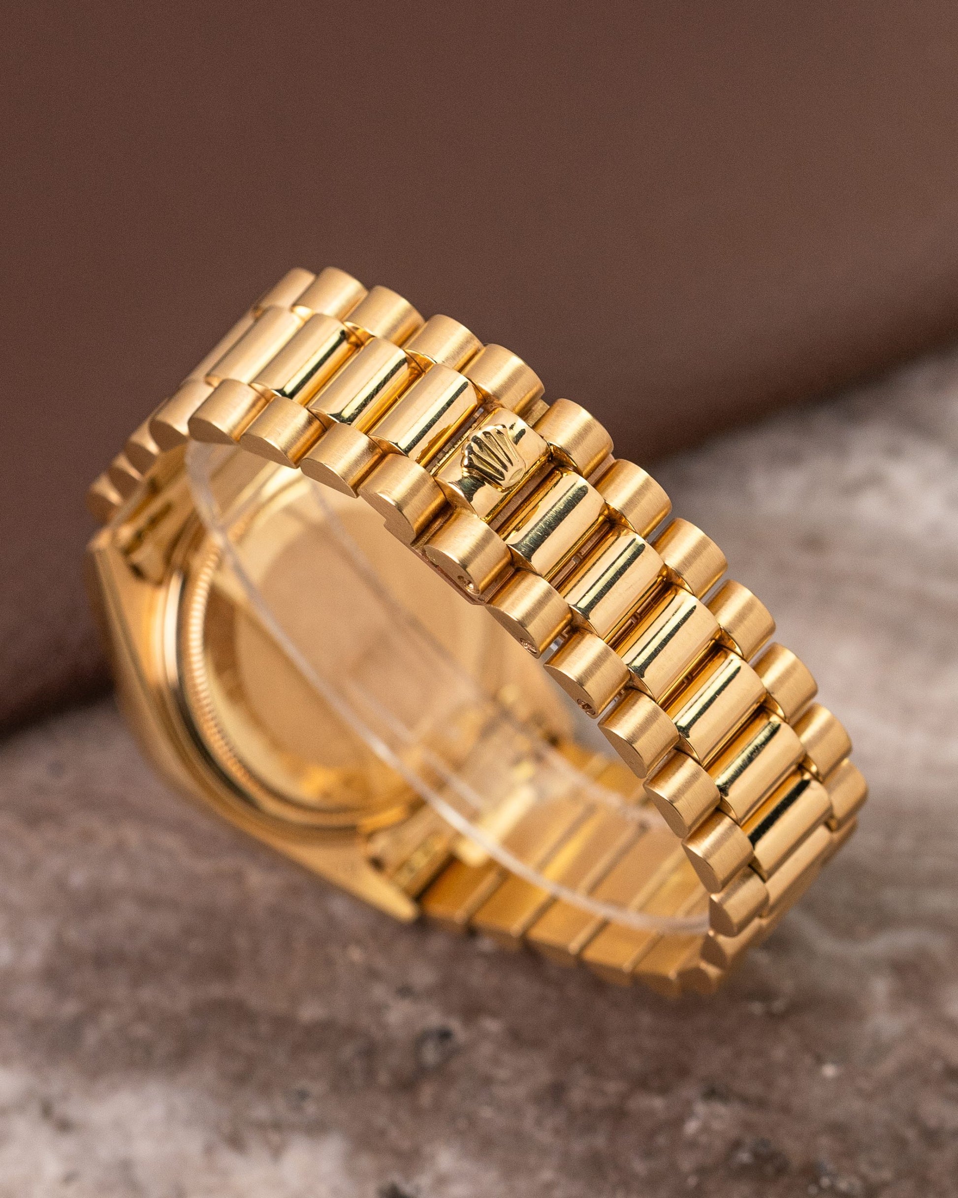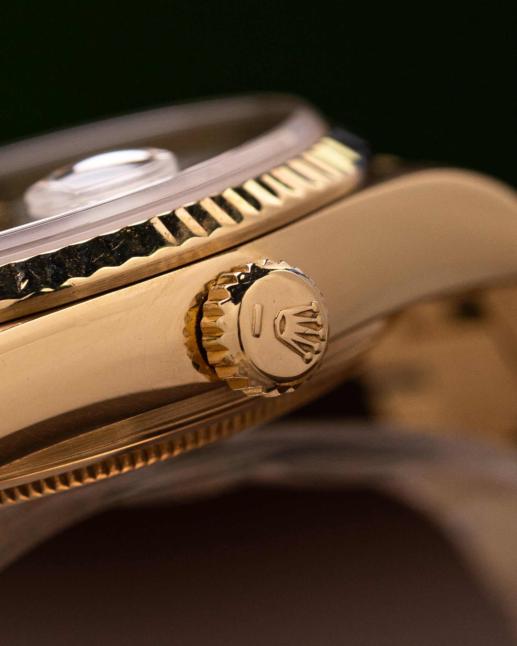 As you can see this 18038 is fitted with a newer ‘Swiss Made’ dial, but still one of our favourite features about the watch. Why? It’s a white dial. You won’t see a Rolex Day-Date with a white dial that often and we love the gold and white combination. We see a lot of people growing into vintage watches due to the special configurations which just can’t be found in the modern models.