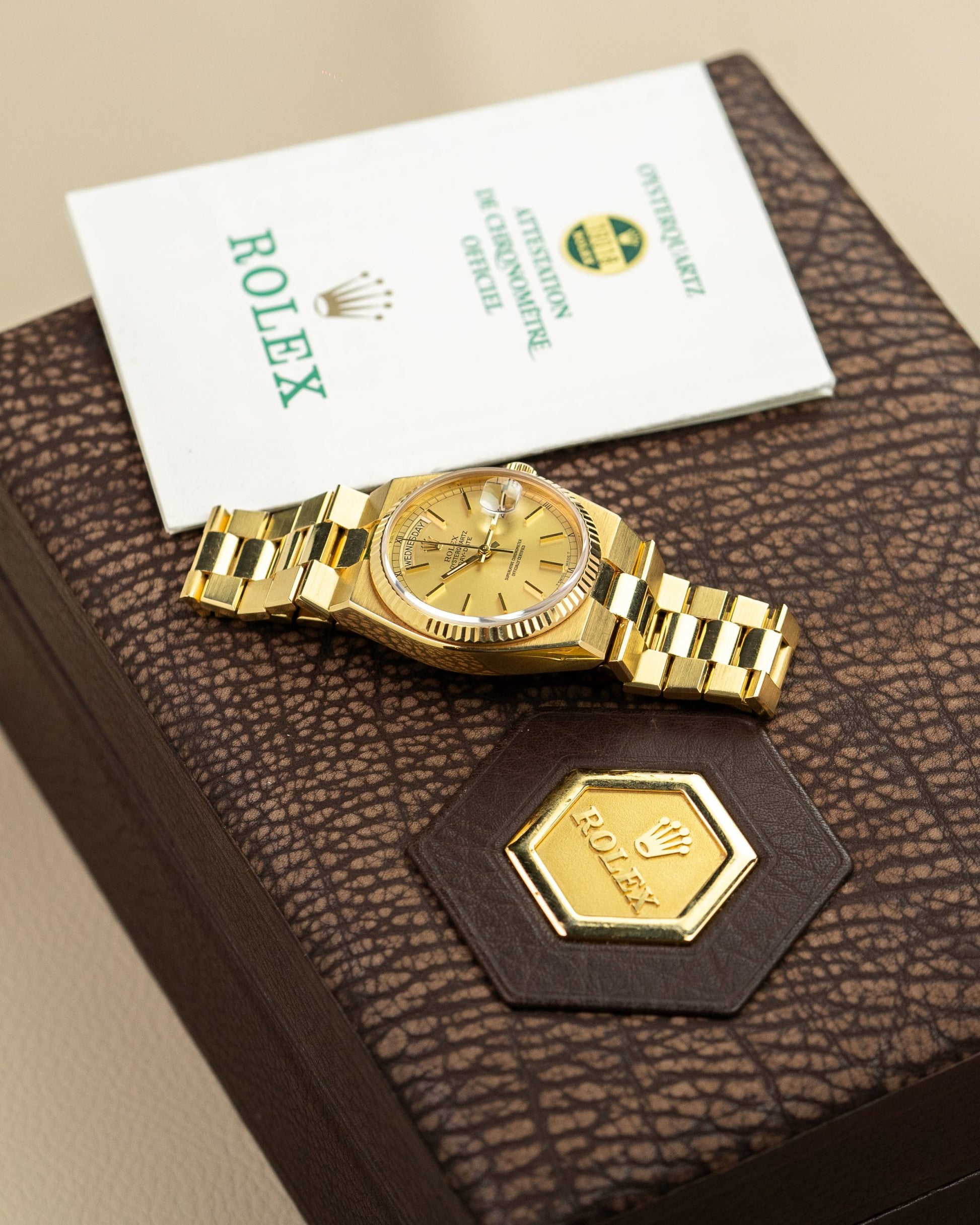 The design of the Day-Date Oysterquartz was a departure from the traditional Day-Date aesthetic. The case had a more angular and contemporary profile, reflecting the design trends of the 1970s and 1980s.
