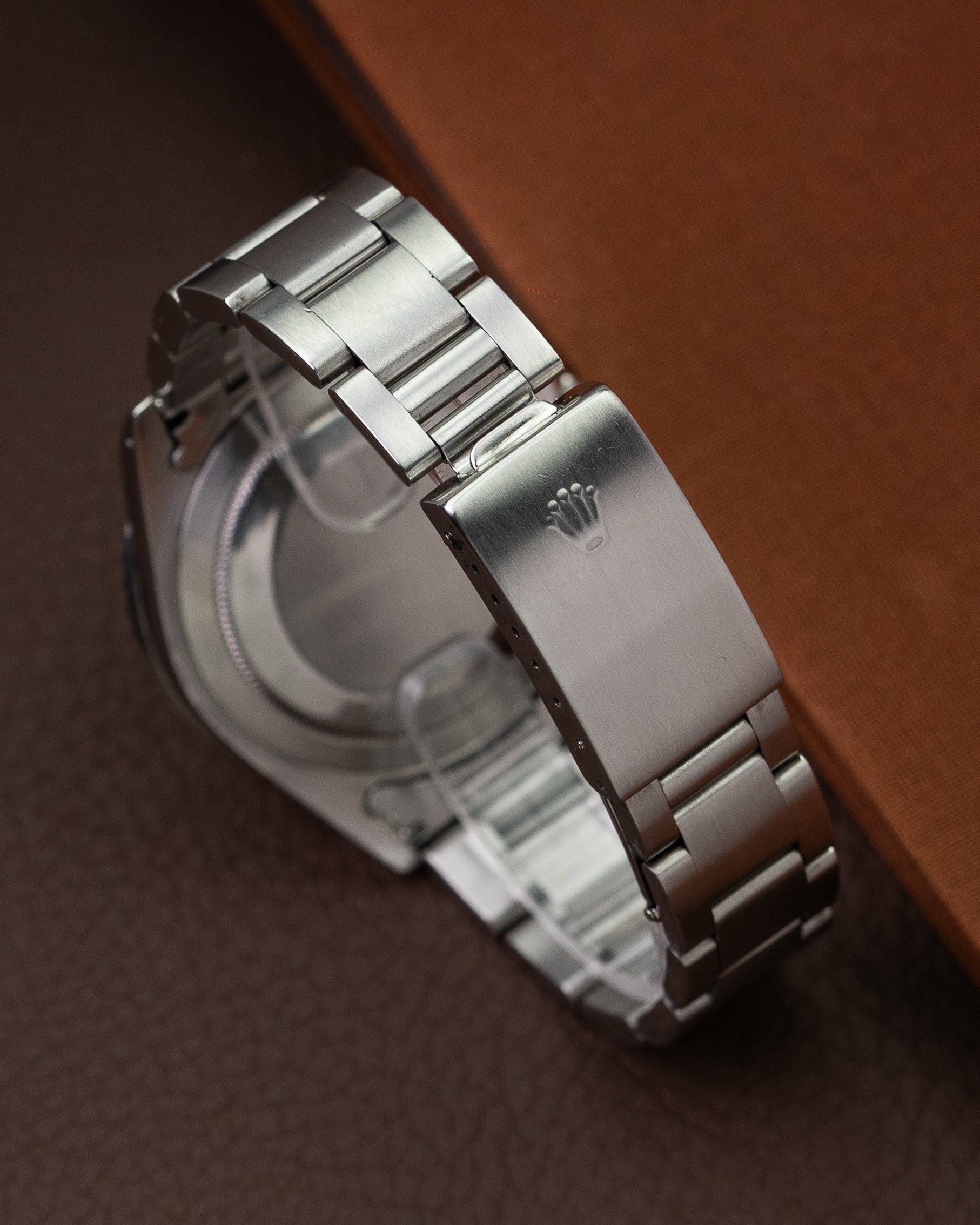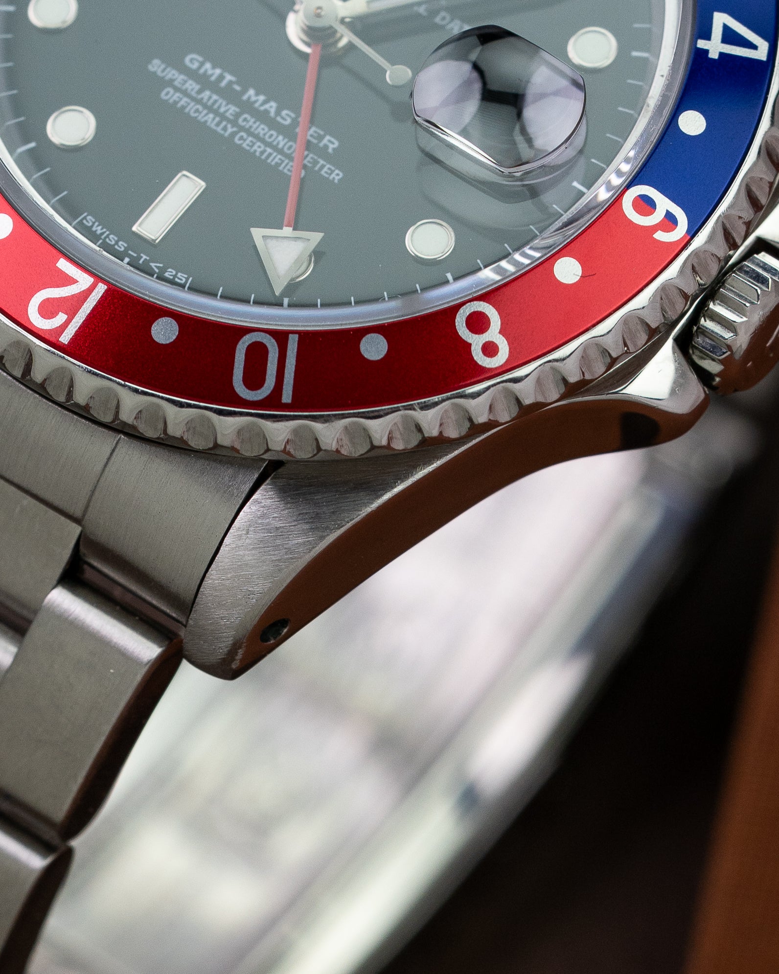 This 16700 can be seen as the prefect transitional GMT Master. The 16700 was produced along side its younger brother the GMT Master II (16710) which now could track 3 time zones instead of 2. This was done because the movement of the 16700 was cheaper to produce so a GMT Master could be offered at a lower price point. It carries the name of the original GMT Master, comes in a very modern case, has quickset date (which the 16710 hasn’t) and has the overall vintage aesthetics that we love so much.