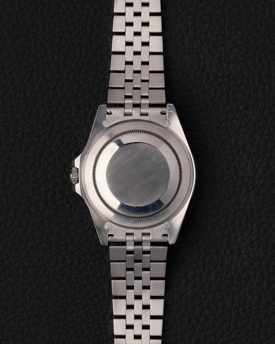 We like this configuration a lot because it’s just a bit more subtle and serene than the Pepsi. It finds itself in a beautiful condition on a jubilee bracelet and if you are the one to buy this watch, it now comes along with a nice story and fun facts.