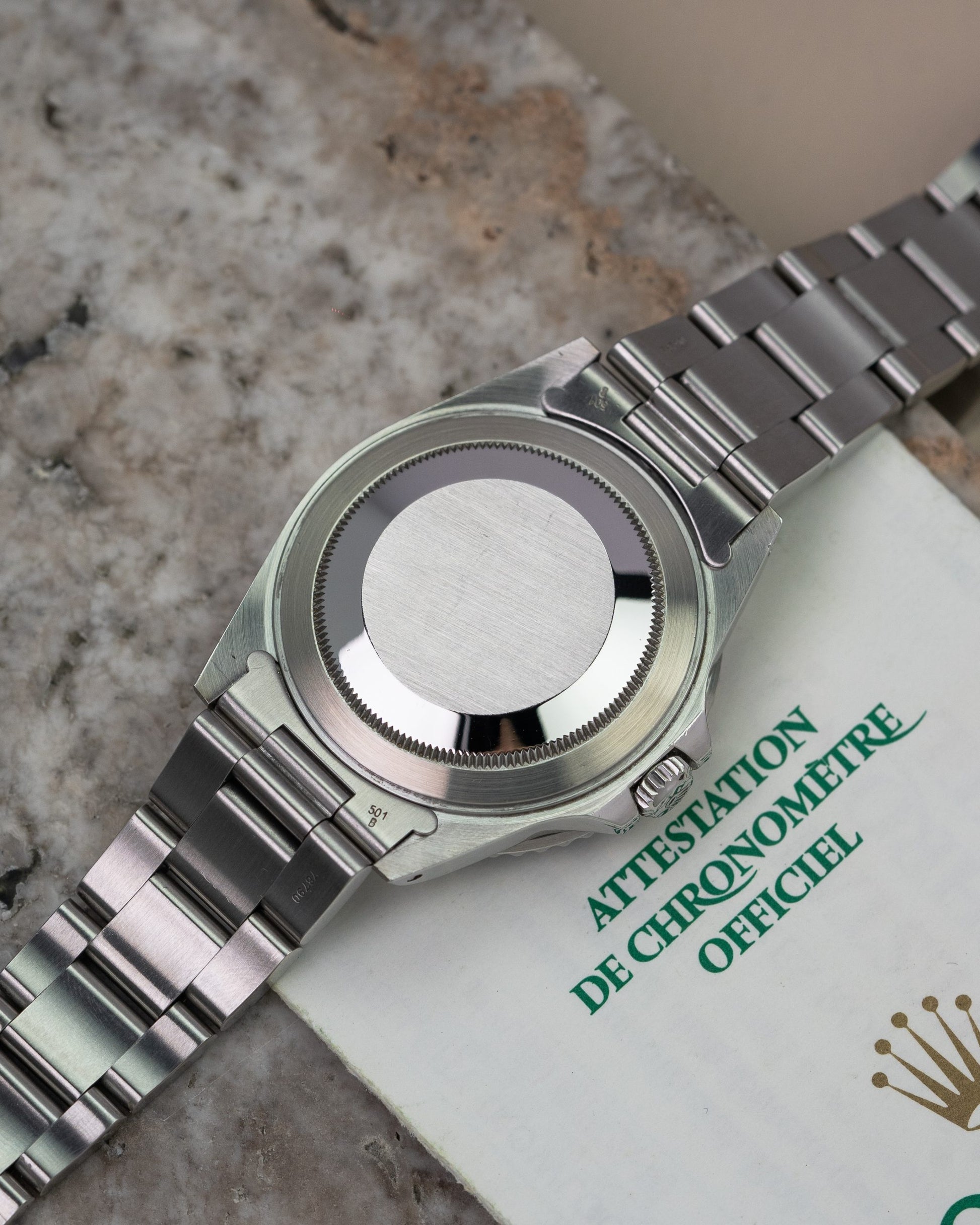 This GMT Master II, offered with papers, comes in good condition, showcasing minimal wear. A true collector’s piece.