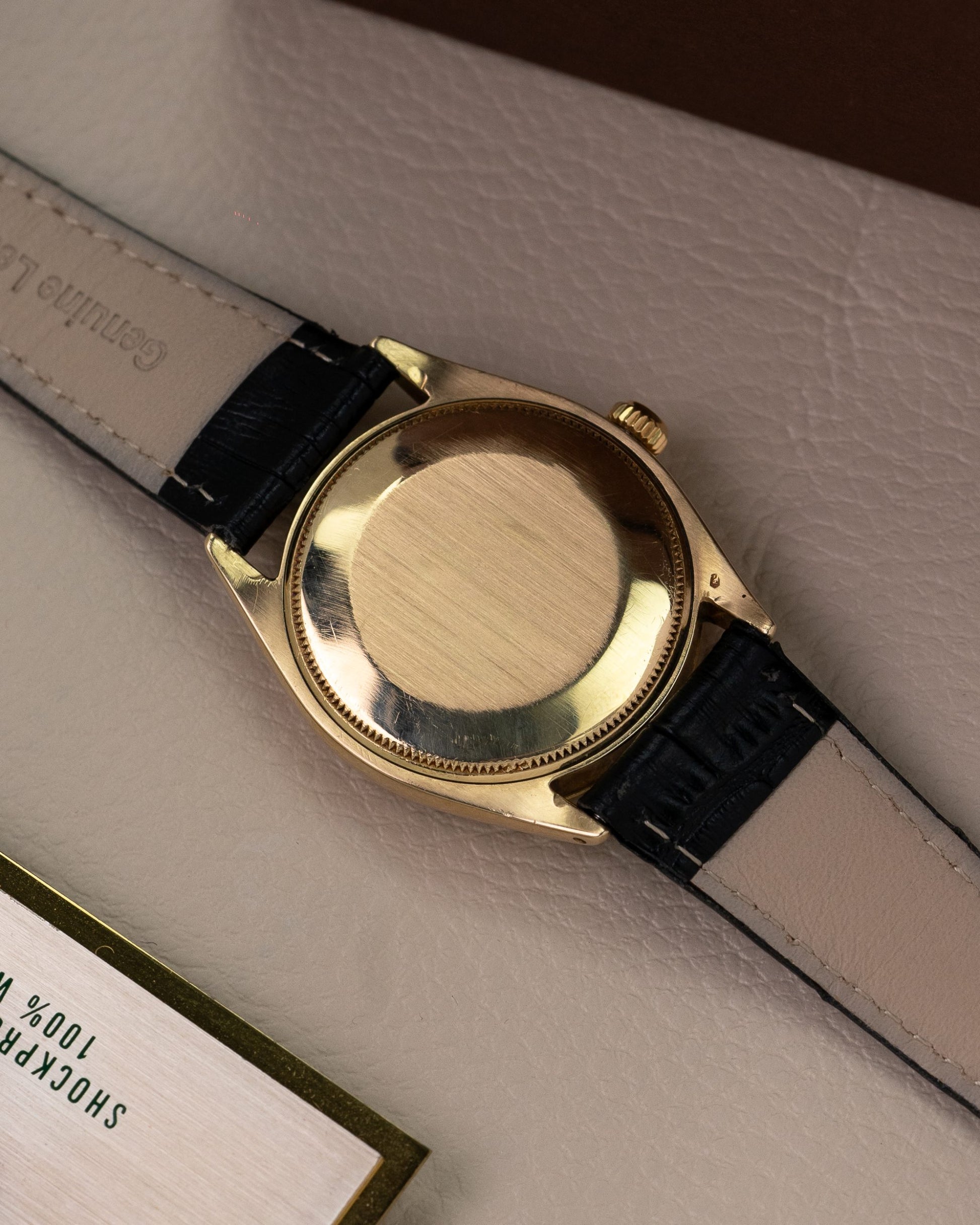 This 1003 features an engine turned bezel with a beautiful silver champaign dial. A perfect example of the phrase “Less is More” Rolex is mainly known for their sport models, but we are always amazed by how many other beautiful examples Rolex has made. We love Rolex and their iconic models as the Submariner, but an example like this makes us exciting. It’s something different. It’s refreshing.