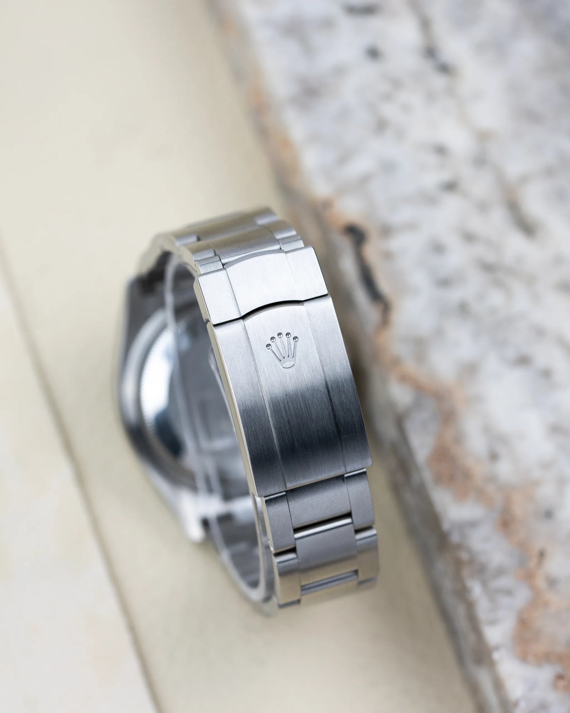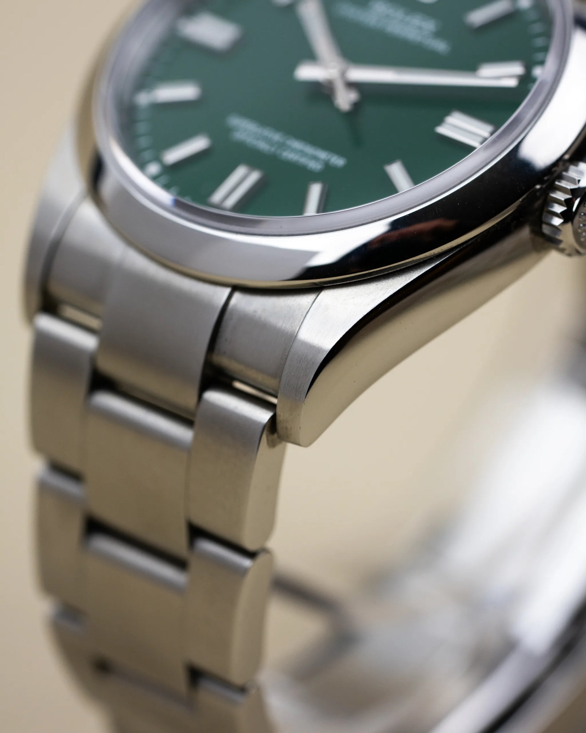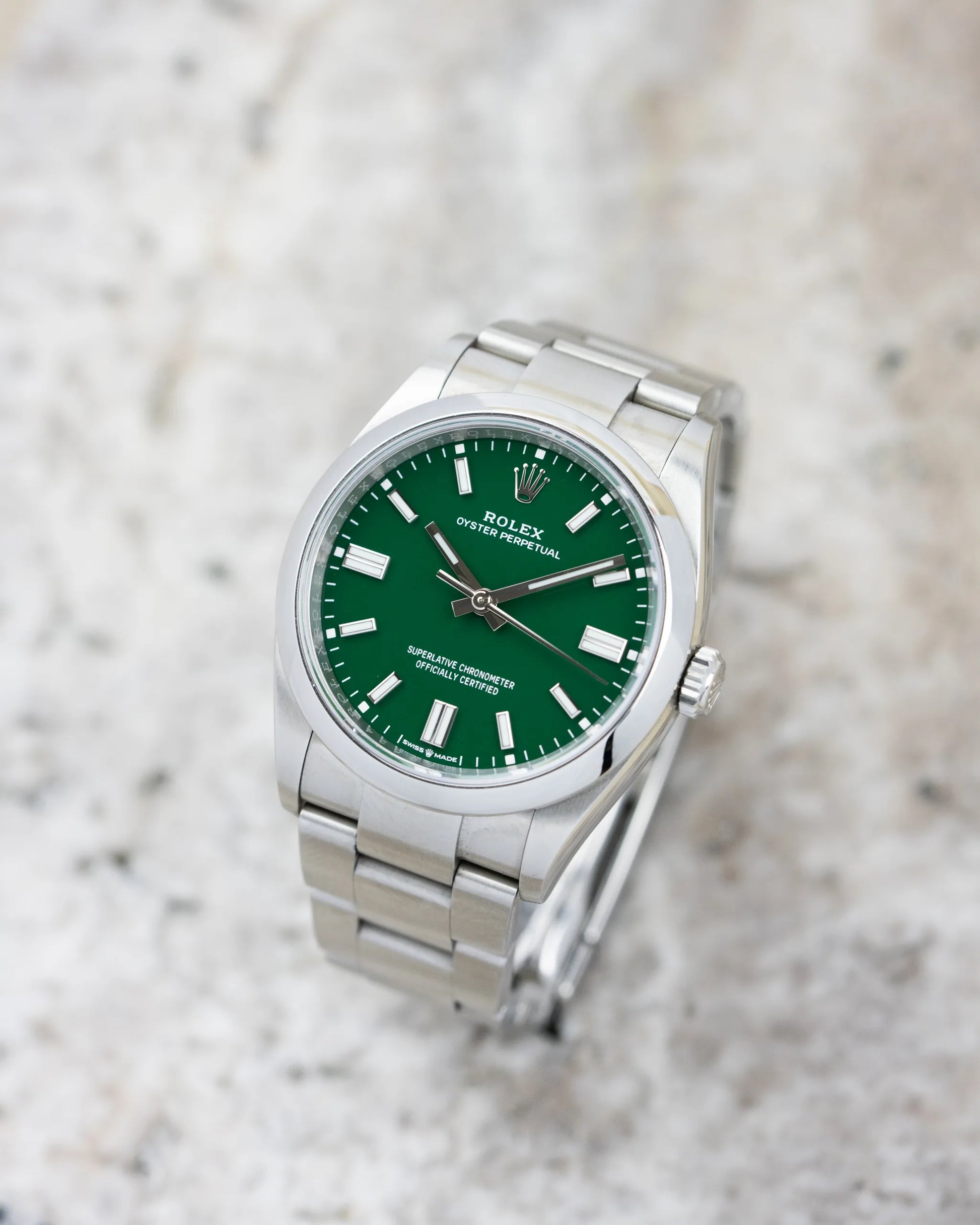 Rolex has a rich legacy of continually refreshing and captivating watch enthusiasts, and this model is no exception. While the Oyster Perpetual line naturally garners admiration, this specific reference elevates its appeal to new heights, demonstrating Rolex's prowess not just in watchmaking but also in design finesse. The dial's captivating elegance seamlessly ties together the entire aesthetic. The 'vintage' references from the 126000 is something we truly admire.