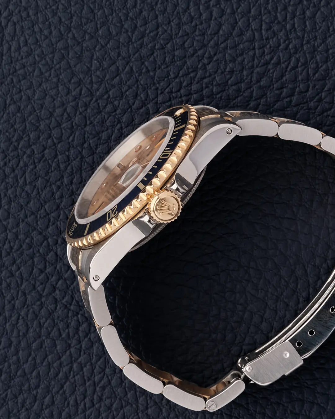 Before the Yachmaster was released, Rolex wanted to appeal to a broader audience and especially the more wealthy ones. that is when they came up with the 16613. A two tone Submariner you would rather see on the wrist of a sailing yacht owner or inhabitant of Monte Carlo. For many people, the ‘regular’ 16613 sufficed, but for the flamboyant and extravagant among the rich there was this special diamond set dial. With 8 diamonds and 3 Saphire crystal