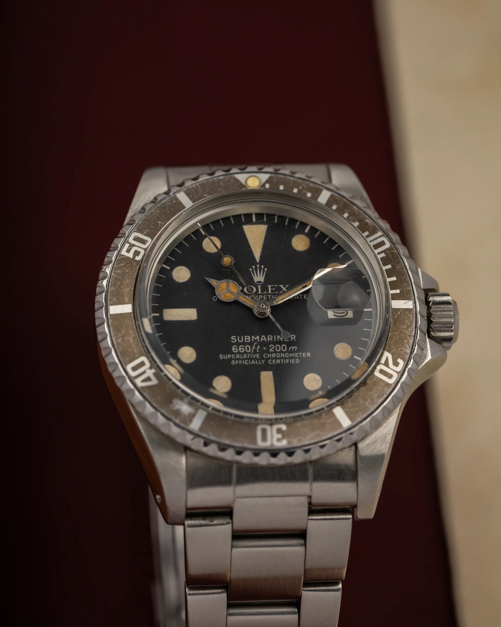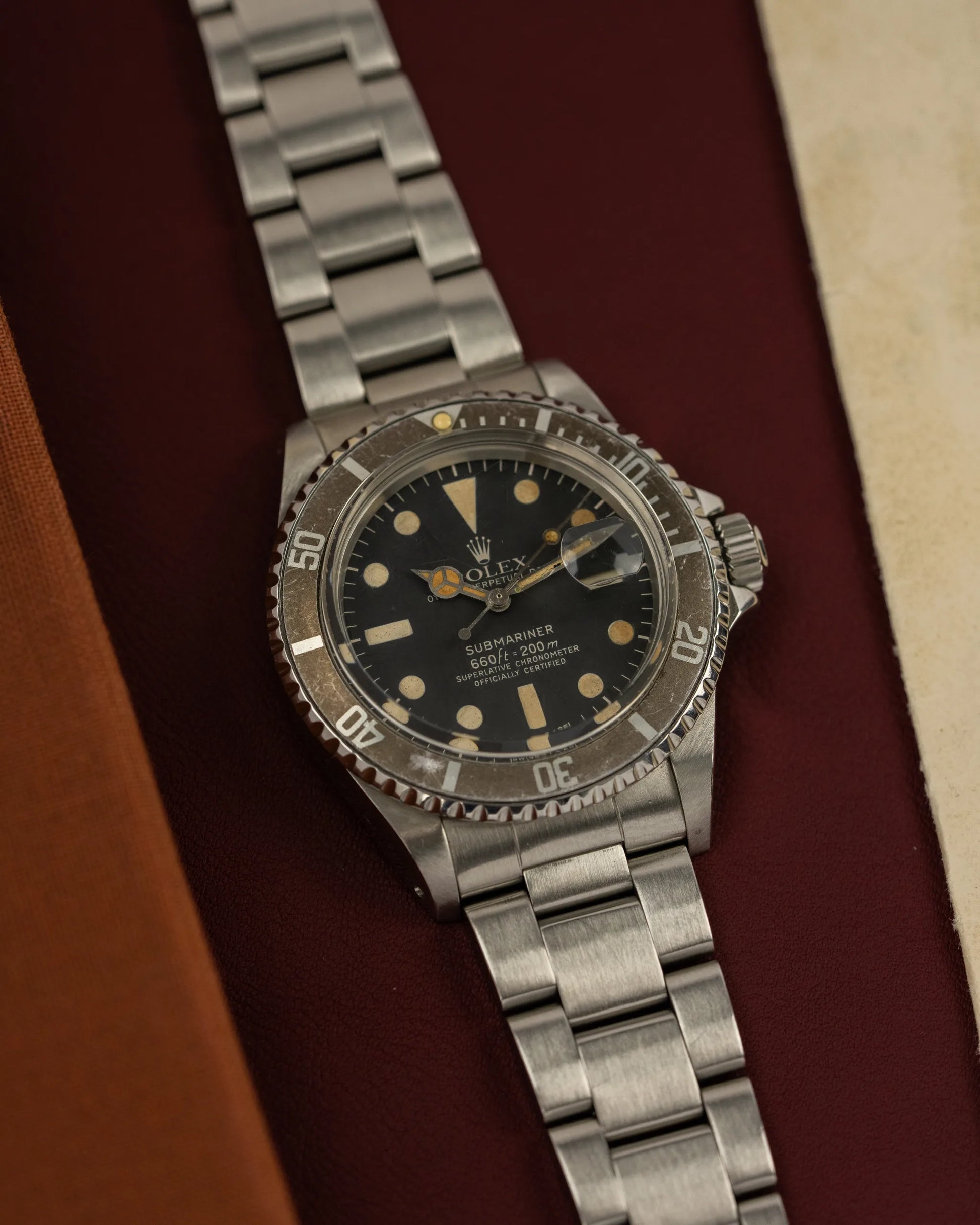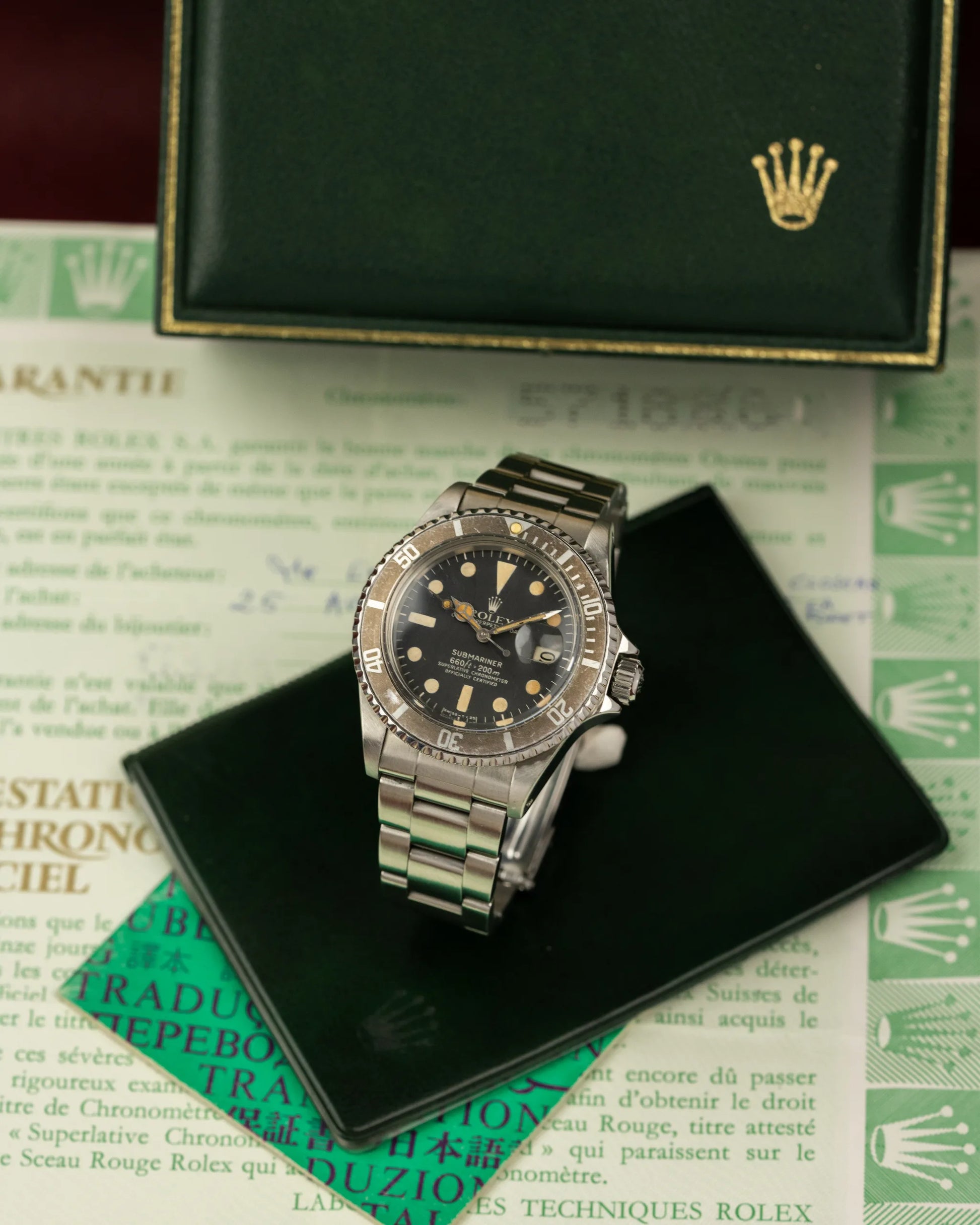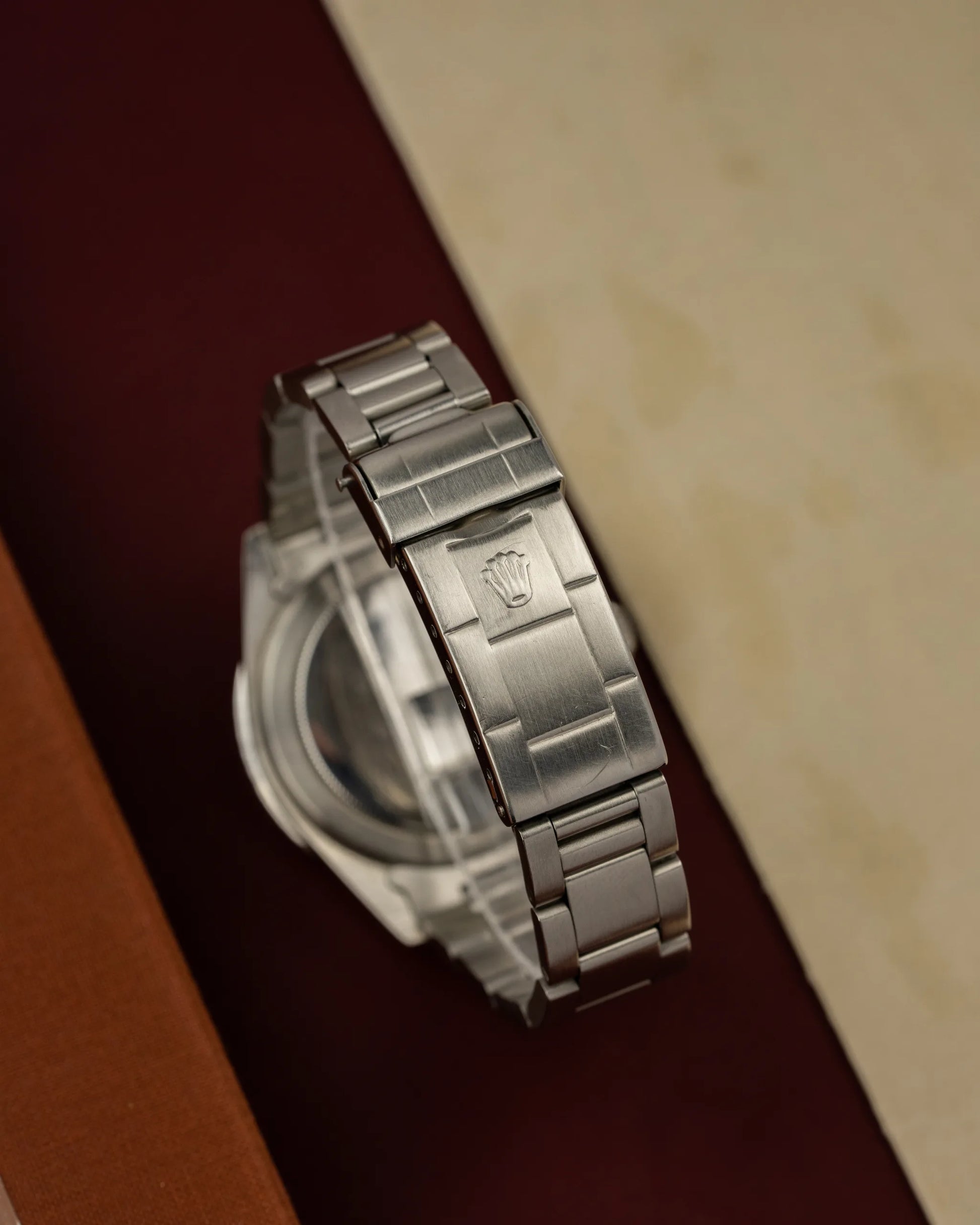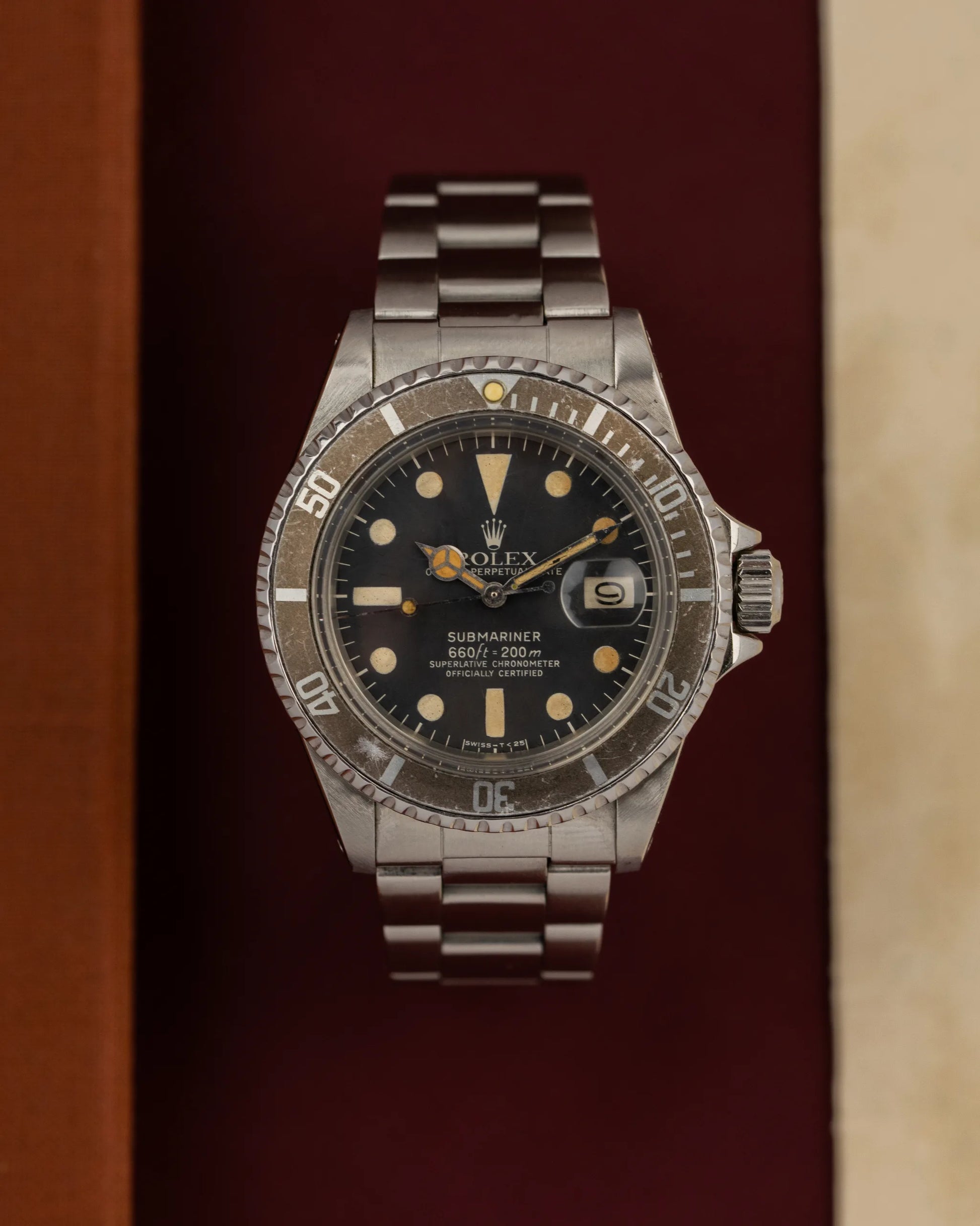 The watch is beautifully faded and filled with stories. The condition is amazing, and another remarkable aspect of this timepiece is its inclusion of the original box and papers, which not only authenticate its provenance but also offer a glimpse into its storied past.