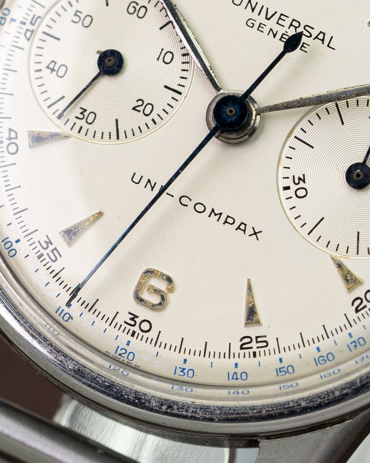 What you see here is the UG Uni-Compax, reference 22273, featuring a 35mm case with square pushers and a beautiful dial layout. This watch is ready for its next owner—someone looking for something truly special.