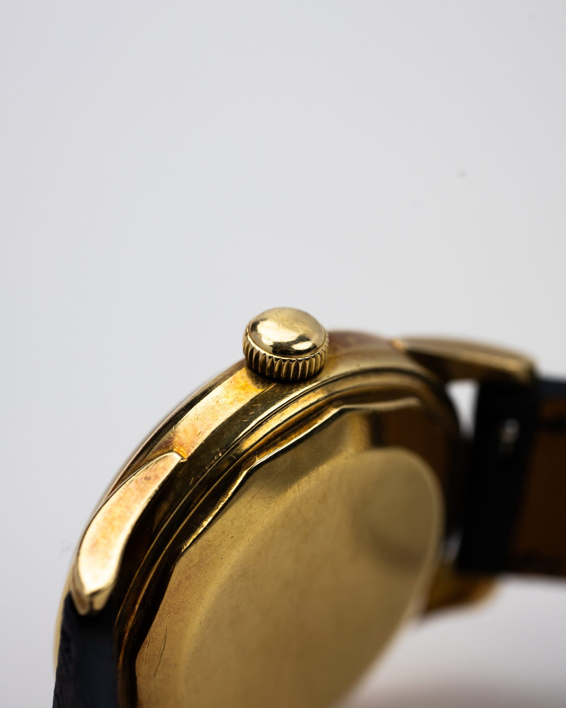 The two-tone creamy colored dial together with the beautiful gold case is just a perfect combination. Although this particular one is in perfect condition, it's uncommon to see a piece like this in its original condition. Most of the dress watches from this period have been refinished, but this one is how we want to have them.